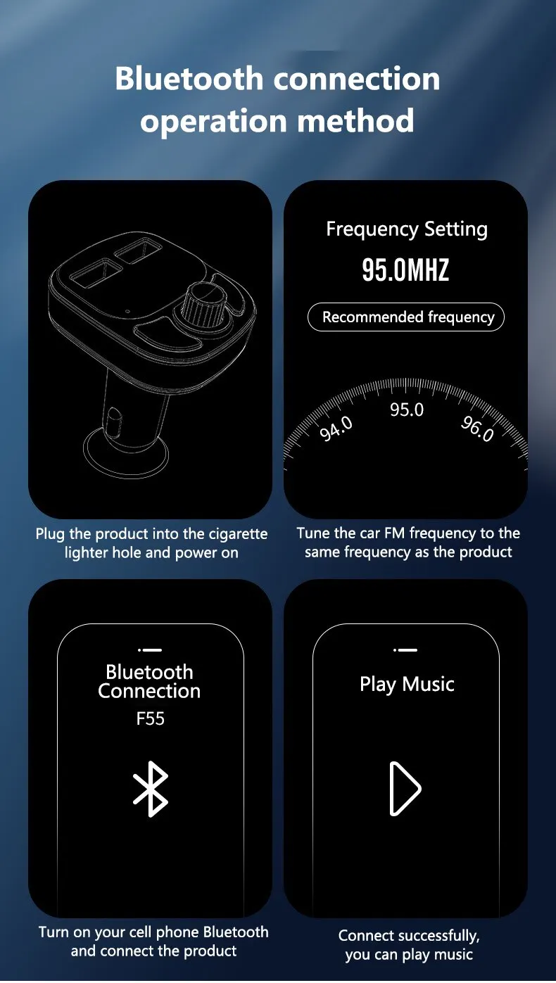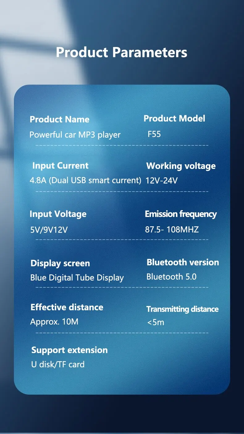 Nombre del producto: Reproductor Bluetooth para coche F55 MP3