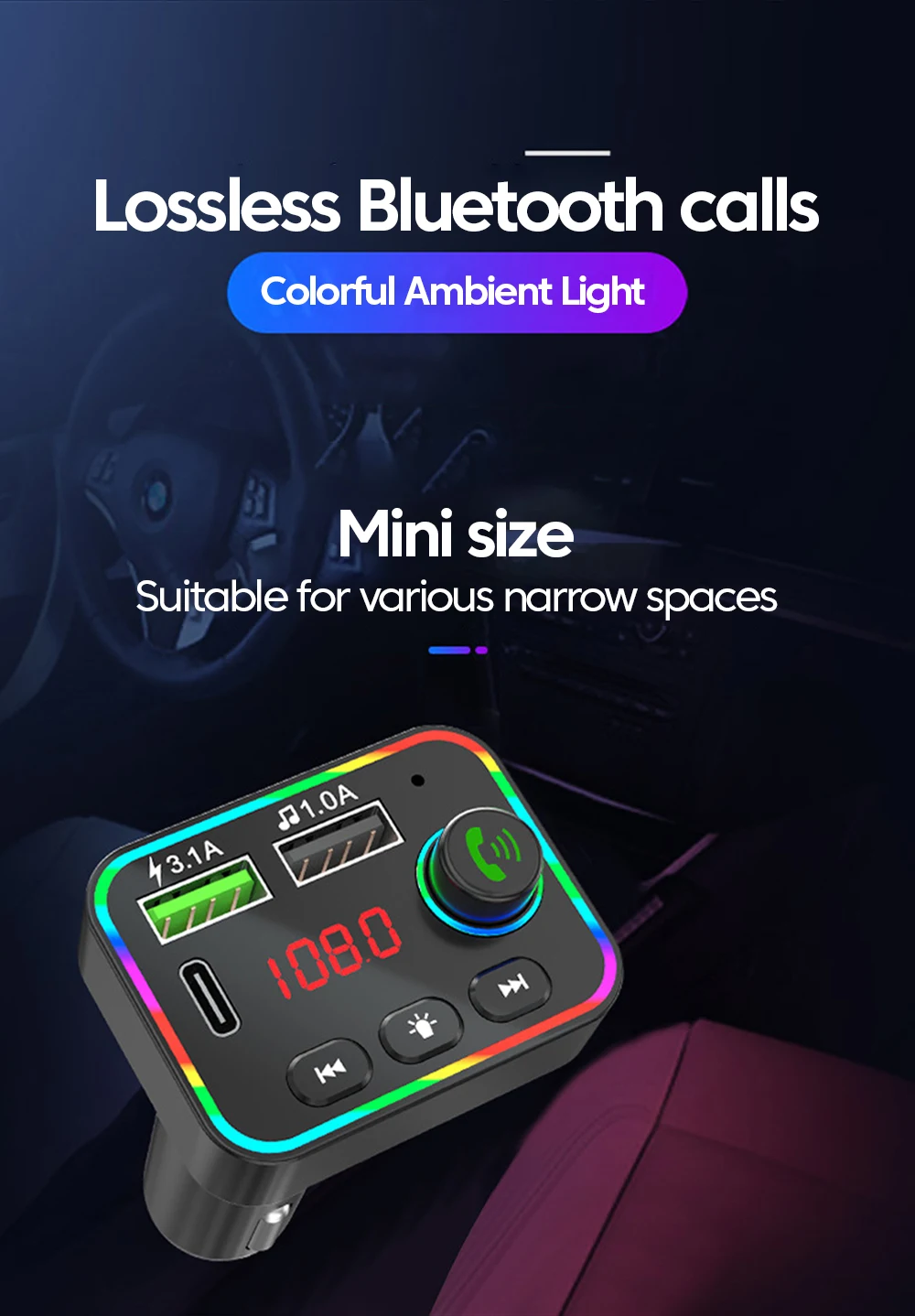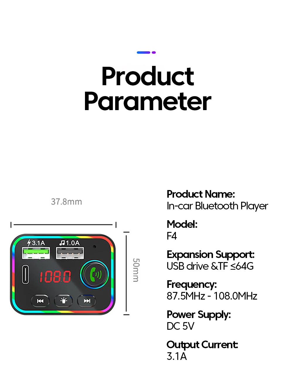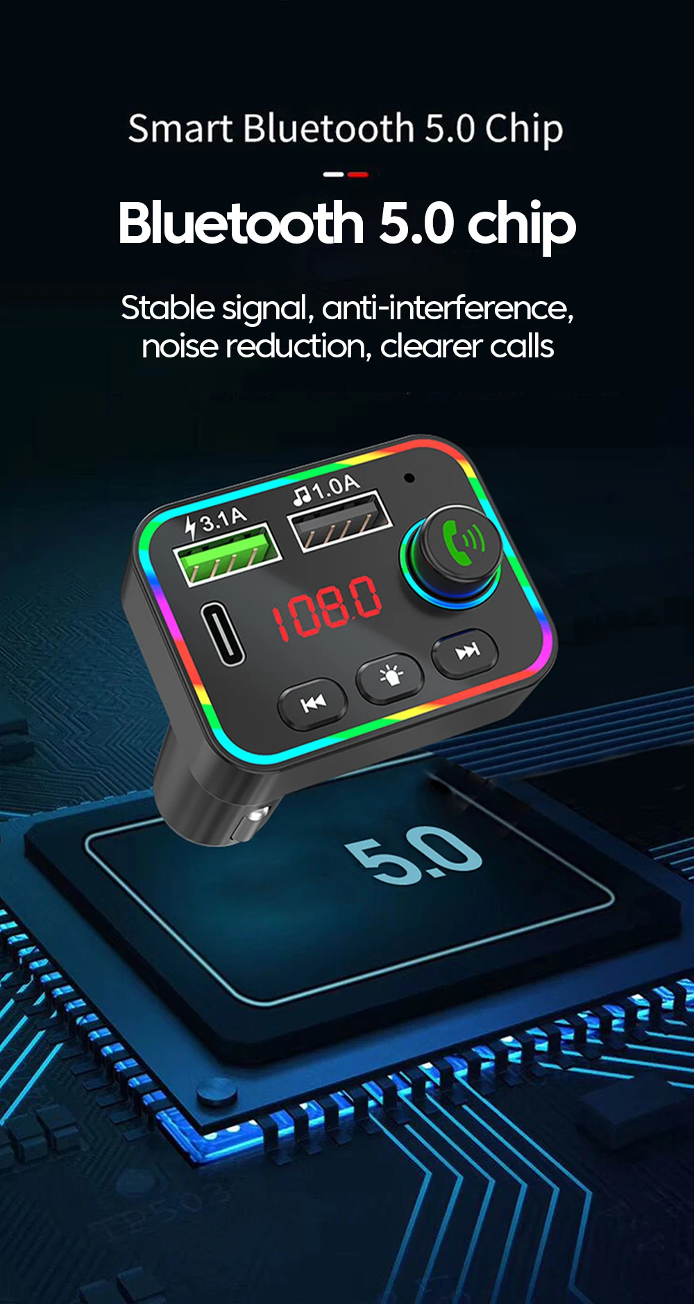8: Bluetooth versión 5.0 Frecuencia de transmisión FM: 87,5-108MHz