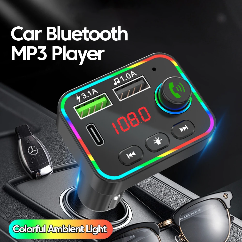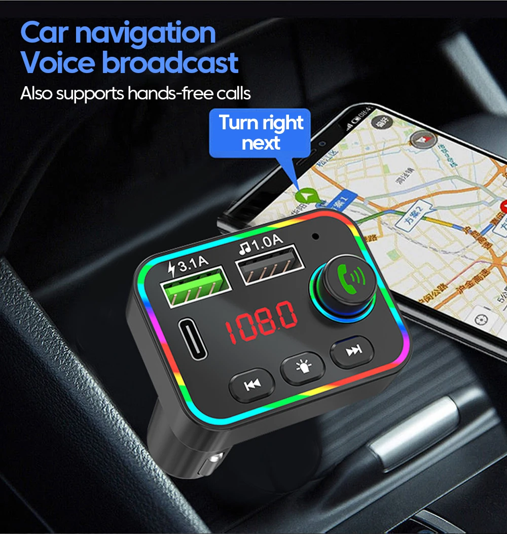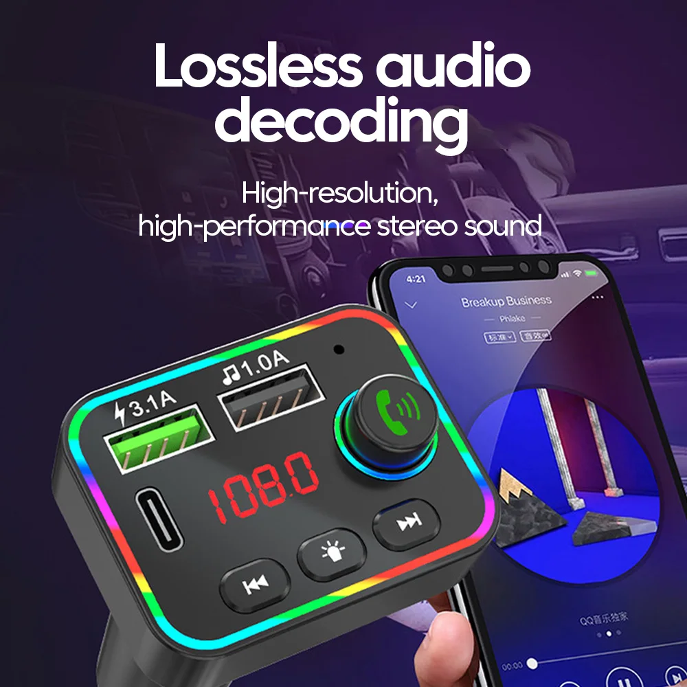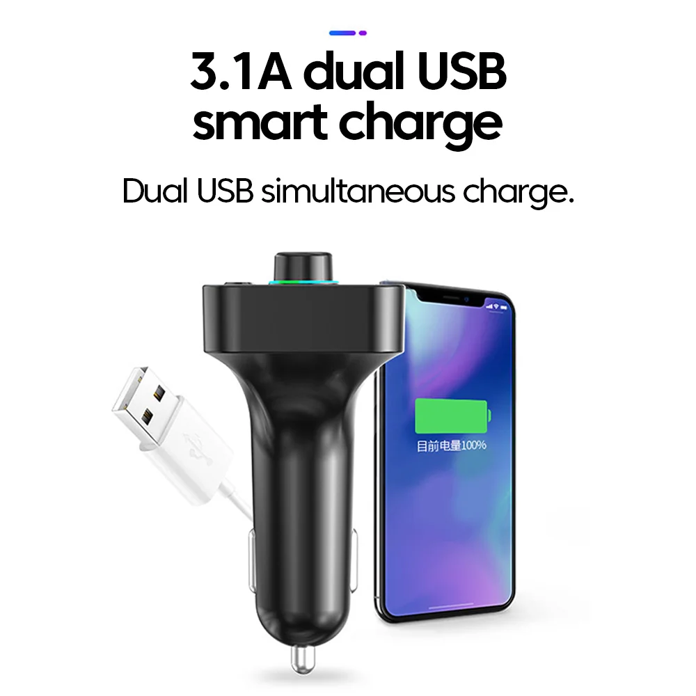 Comprar Transmisor FM Bluetooth 5,0, reproductor Mp3 para coche con pantalla Led, llamada con manos libres inalámbrica, interfaz USB Dual, adaptador de carga rápida