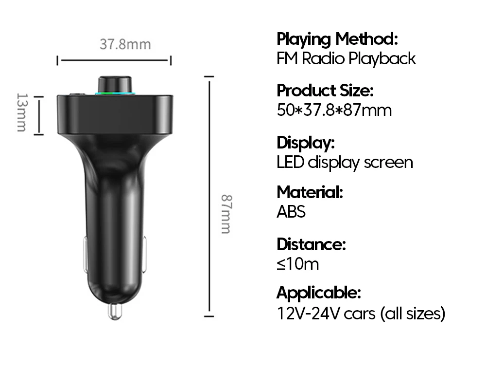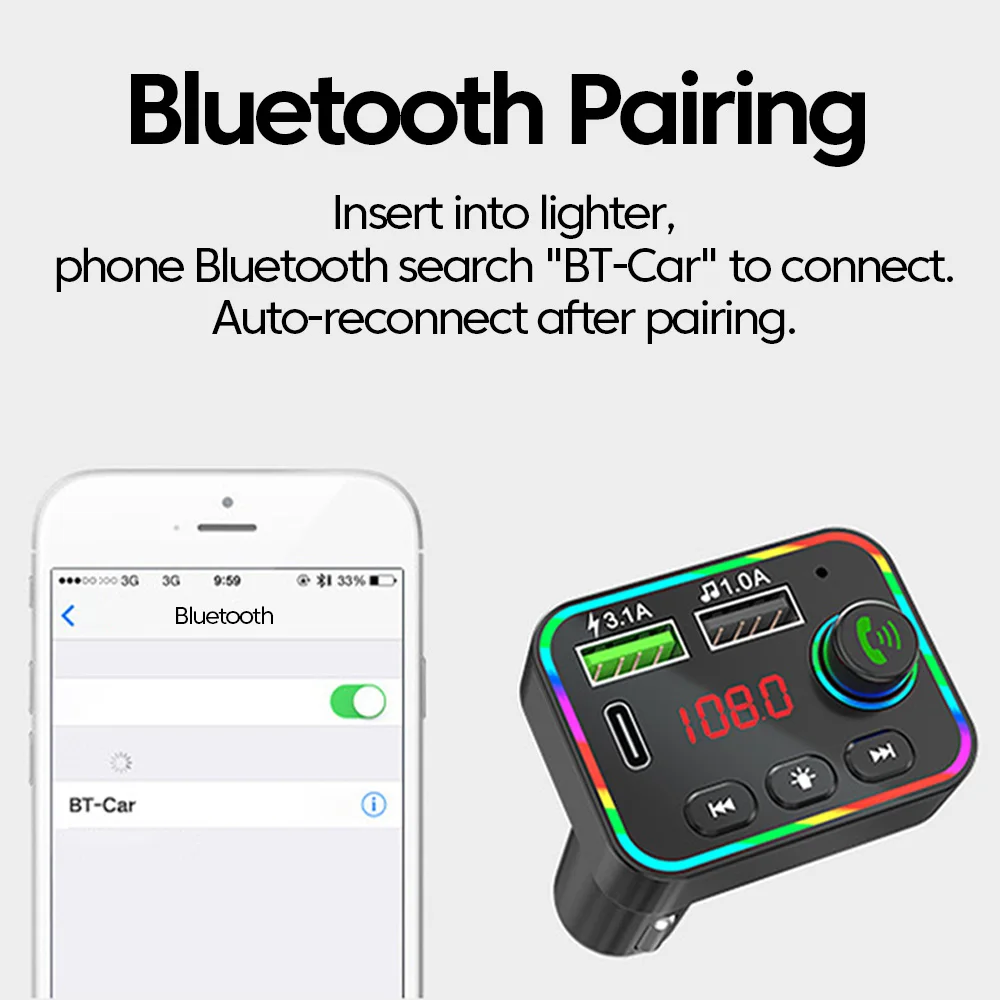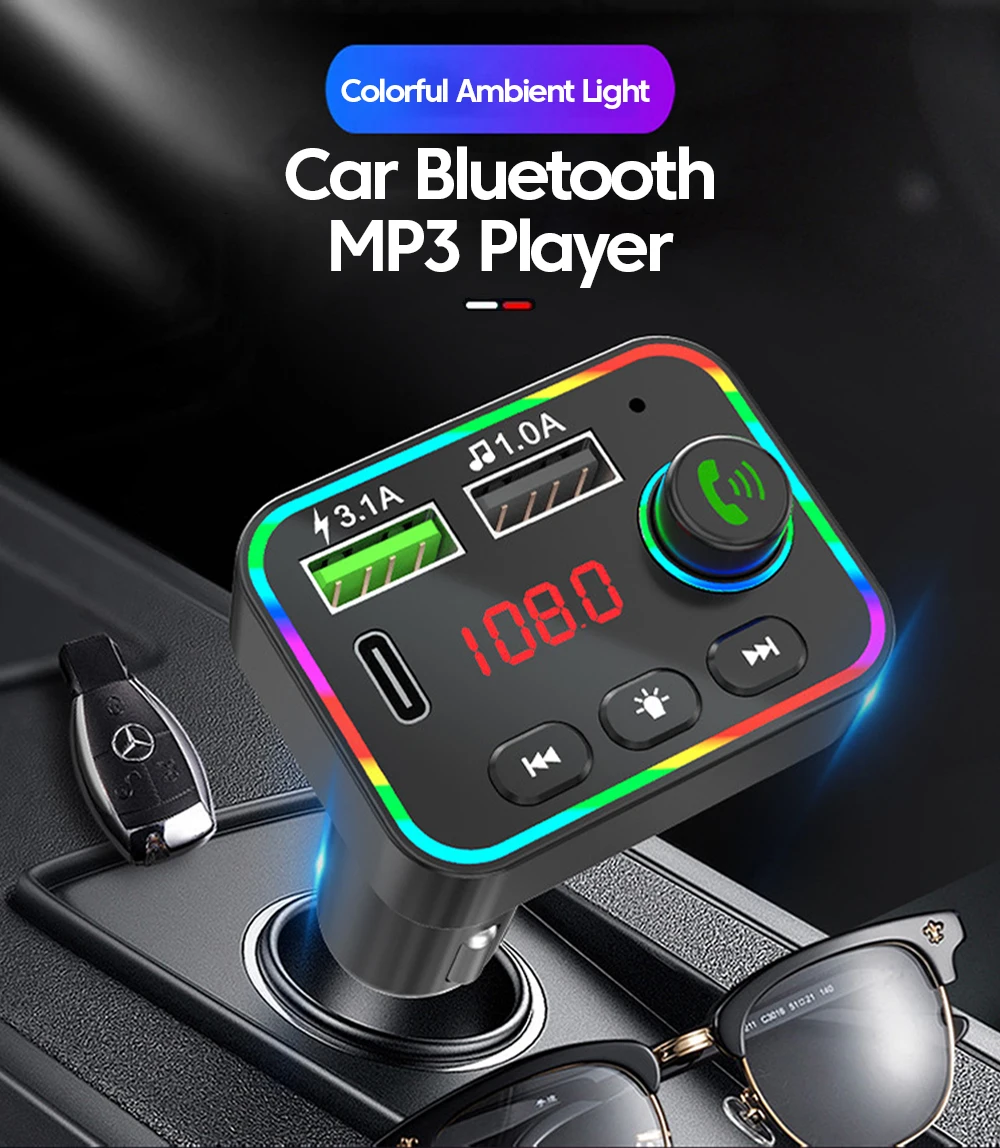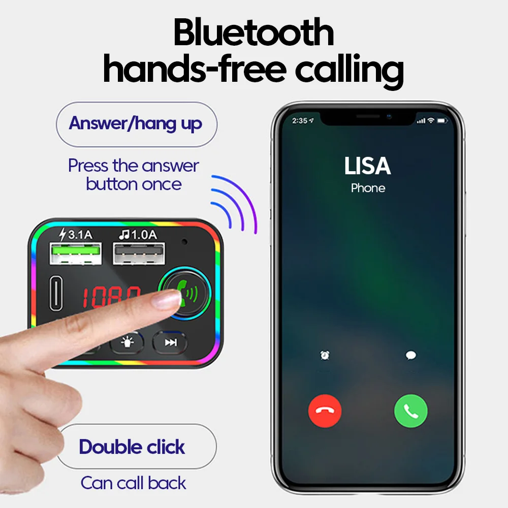 Comprar Transmisor FM Bluetooth 5,0, reproductor Mp3 para coche con pantalla Led, llamada con manos libres inalámbrica, interfaz USB Dual, adaptador de carga rápida