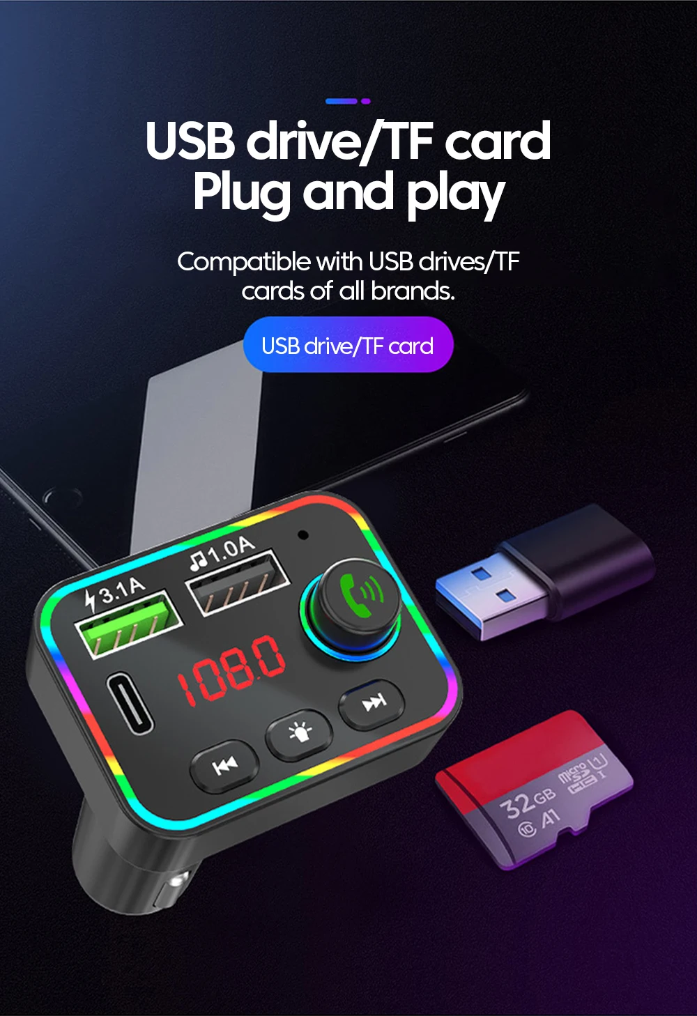 Expansión de soporte: unidad flash USB/tarjeta TF
