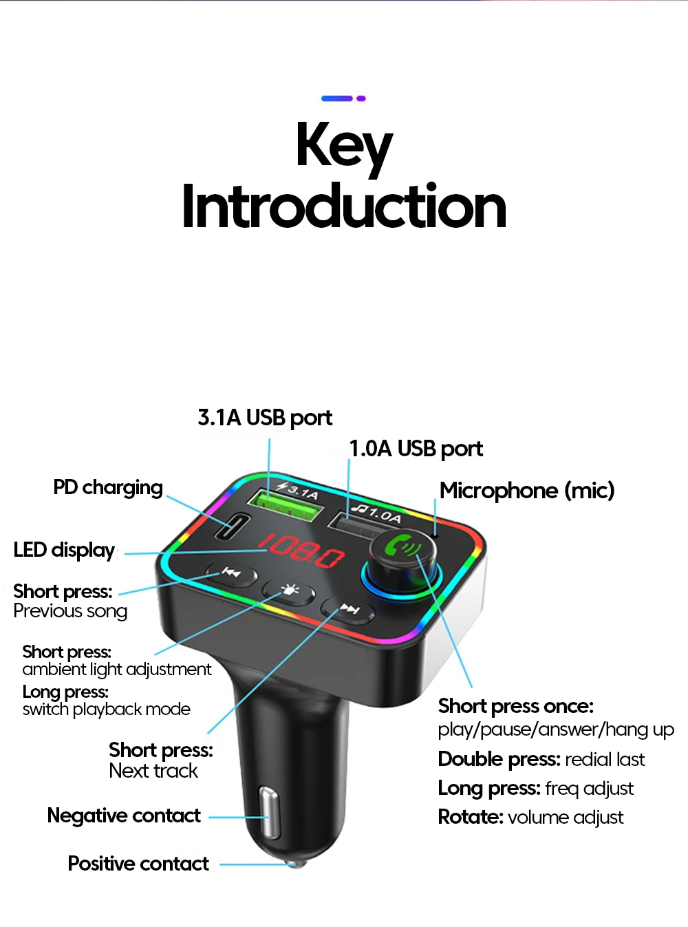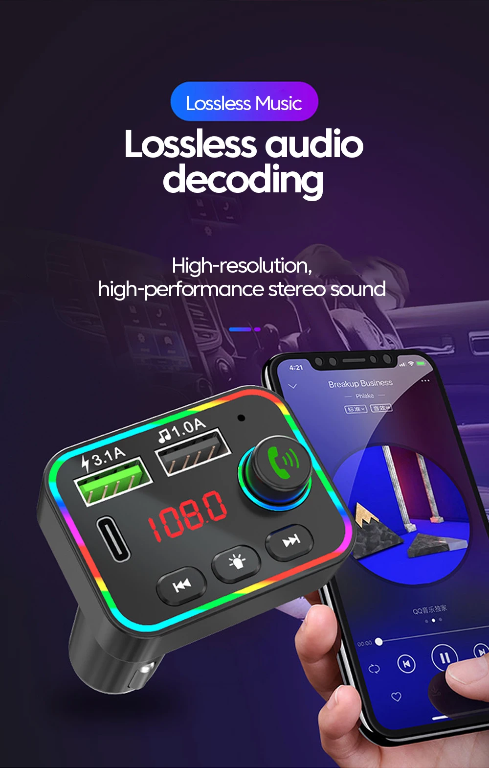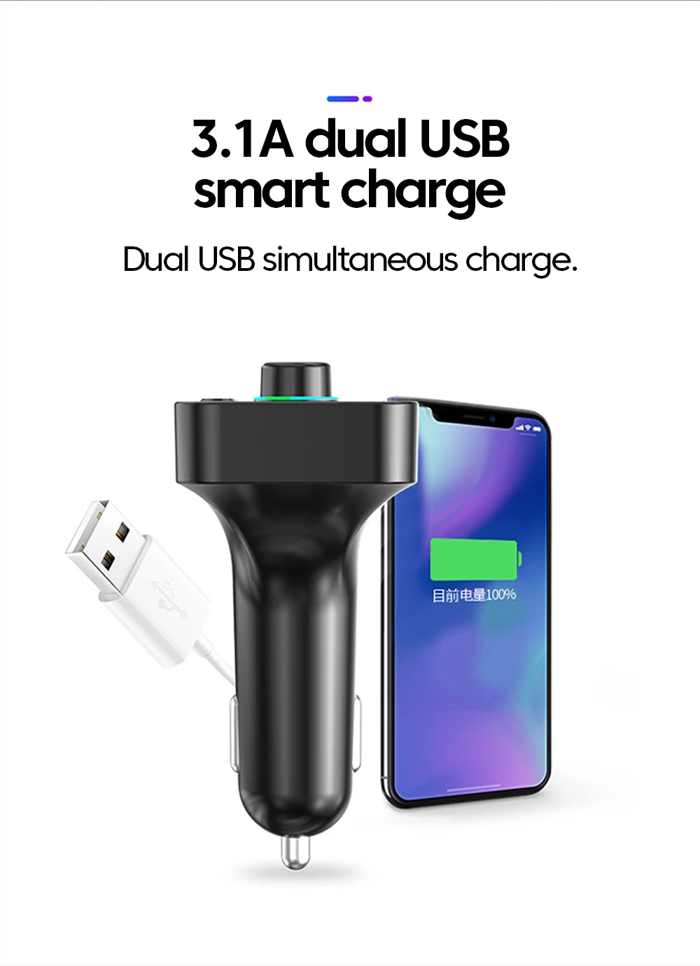 2.Inserte este producto en la toma del encendedor del automóvil y configure la frecuencia del producto para que coincida con la frecuencia de la radio en este momento.