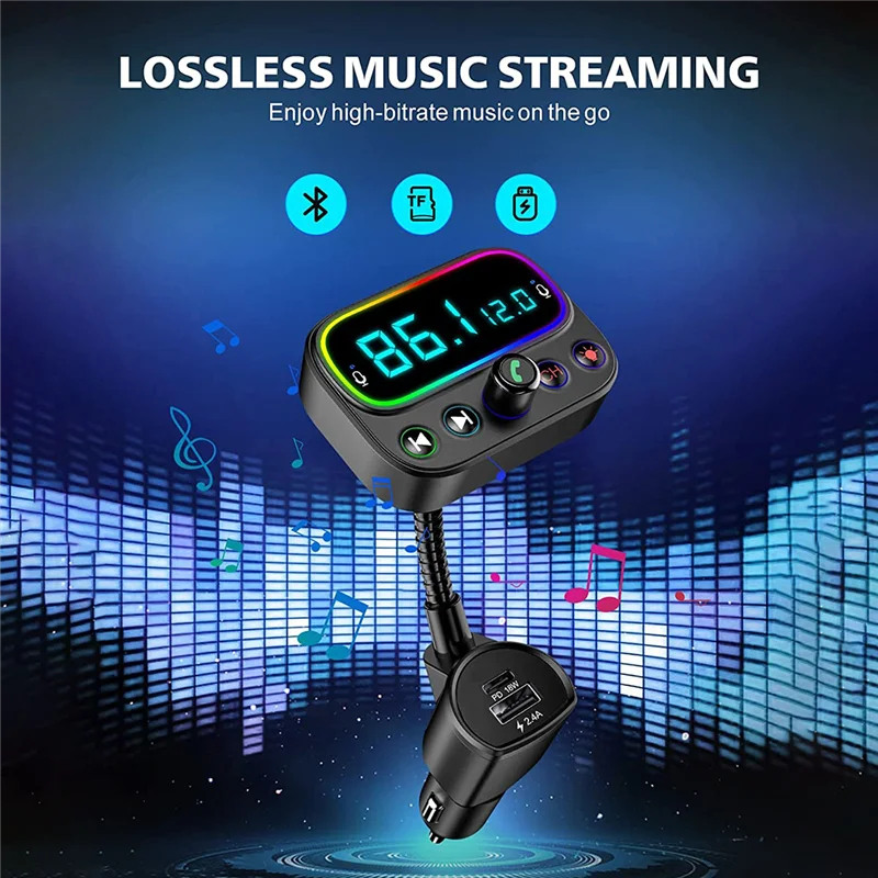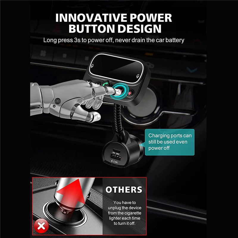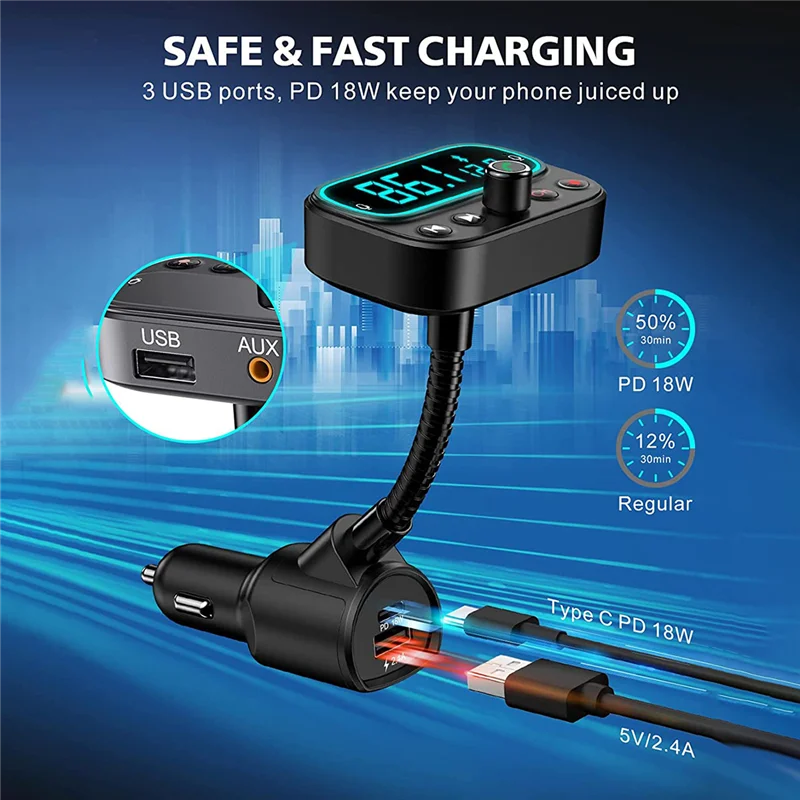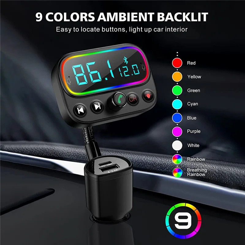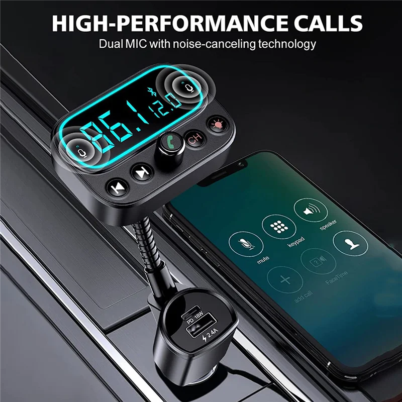 [Sonido claro y música sin pérdidas] El diseño de micrófono dual incorporado recoge el sonido mejor que uno solo; La tecnología de reducción de ruido CVC reduce eficazmente el ruido y el eco; El chip Bluetooth 5.0 avanzado garantiza una conexión estable y una velocidad de transmisión rápida. Por lo tanto, este adaptador bluetooth para automóvil le brindará llamadas nítidas y una extraordinaria transmisión de música de alta fidelidad mientras conduce. [Carga rápida USB-C PD y 3 puertos USB] El transmisor de audio Bluetooth tiene 3 puertos de carga: una salida de puerto de carga PD USB-C (tipo C) de 18 W 5 V/3 A, 9 V/2 A, 12 V/1. 5A como máximo y carga dispositivos compatibles al 50% en tan solo 30 minutos; un 5V/2. Puerto USB 4A para carga normal; Un puerto de unidad USB en la parte superior que también se puede utilizar como puerto de carga. Comparta el puerto de carga con amigos mientras escucha música. [Pantalla LCD de 2,0 pulgadas y botón de encendido/apagado] El transmisor Sebigy FM tiene una gran pantalla LCD que no solo muestra la frecuencia FM, sino que también muestra el voltaje de la batería del automóvil, lo que le permite mantenerse al tanto del uso de la batería. Apagado con una sola tecla, lo que evita la molestia de enchufar y desconectar la energía cada vez que arranca y sale del automóvil. Simplemente mantenga presionado el botón "CH" durante 3S para apagar el transmisor FM (Nota: el puerto de carga aún se puede usar incluso si se apaga la alimentación). [Llamadas manos libres y asistente de voz] Simplemente toque el botón de llamada para responder/reproducir/colgar/rechazar llamadas; cambie sin problemas entre llamadas entrantes y música. Al utilizar Siri o el Asistente de Google para hacer llamadas, enviar mensajes de texto o obtener direcciones de conducción, puede concentrarse en la carretera. Además, este kit de automóvil Bluetooth admite la transmisión de anuncios de voz desde aplicaciones de navegación existentes. Ya no tienes que mirar tu teléfono con tanta frecuencia. [Retroiluminación LED de 9 colores] ¿Quieres que el interior de tu coche luzca más fresco y impresionante? El diseño circular retroiluminado satisfará sus expectativas con sus 9 opciones de colores de iluminación que incluyen rojo/azul/verde/amarillo/cian/púrpura/blanco/arcoíris/arco iris respirable. Con las luces, puede encontrar botones con mayor precisión y rapidez en la oscuridad para una conducción segura (nota: las luces se pueden apagar). Color negro Material: plástico Contenido del paquete: 1 transmisor FM Bluetooth 5.0 para coche. Solo el contenido del paquete anterior, otros productos no están incluidos. Nota: Los reflejos de la luz y las diferentes pantallas pueden hacer que el color del elemento en la imagen sea un poco diferente al real. El error de medición permitido es +/- 1-3 cm.