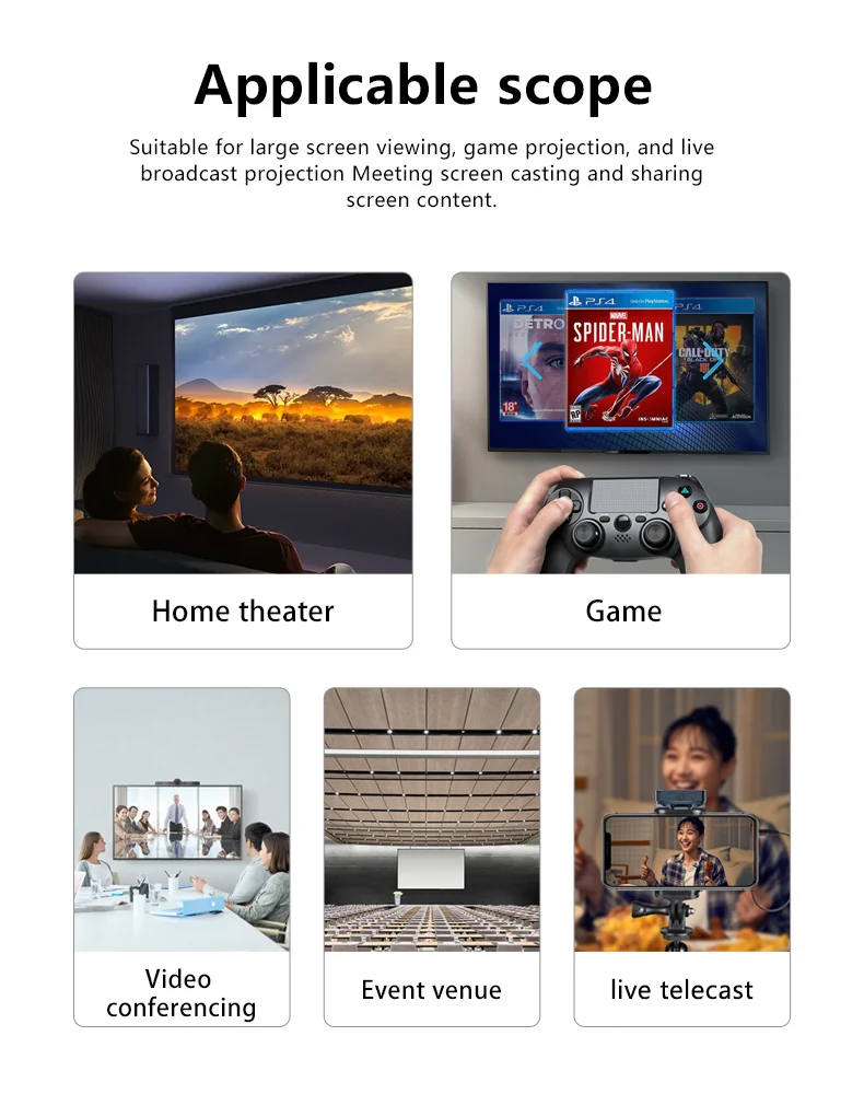 6. Altamente compatible: totalmente compatible con host de juegos HDMI 1080P/DVD/decodificador/PS3/4/5/