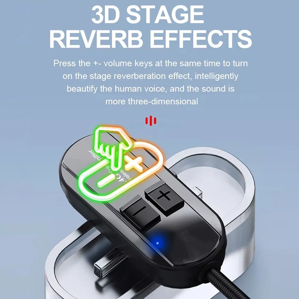 3.Micrófono inalámbrico y efecto de reverberación de escenario 2 en 1 y 3D de mano: Hay dos formas de usar micrófonos inalámbricos para cantar: como micrófono de auricular universal, o quitando el soporte para la cabeza, se convertirá en un micrófono de mano.Al presionar simultáneamente los botones de volumen inalámbricos "+" y "-" en el micrófono principal activará el efecto de reverberación del escenario, embelleciendo inteligentemente su voz y haciéndola más tridimensional.