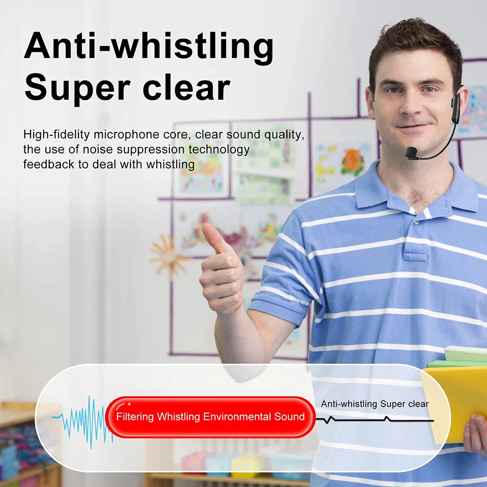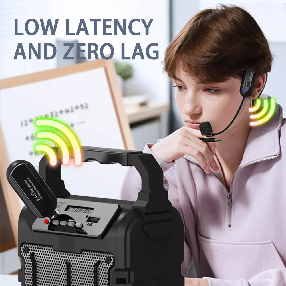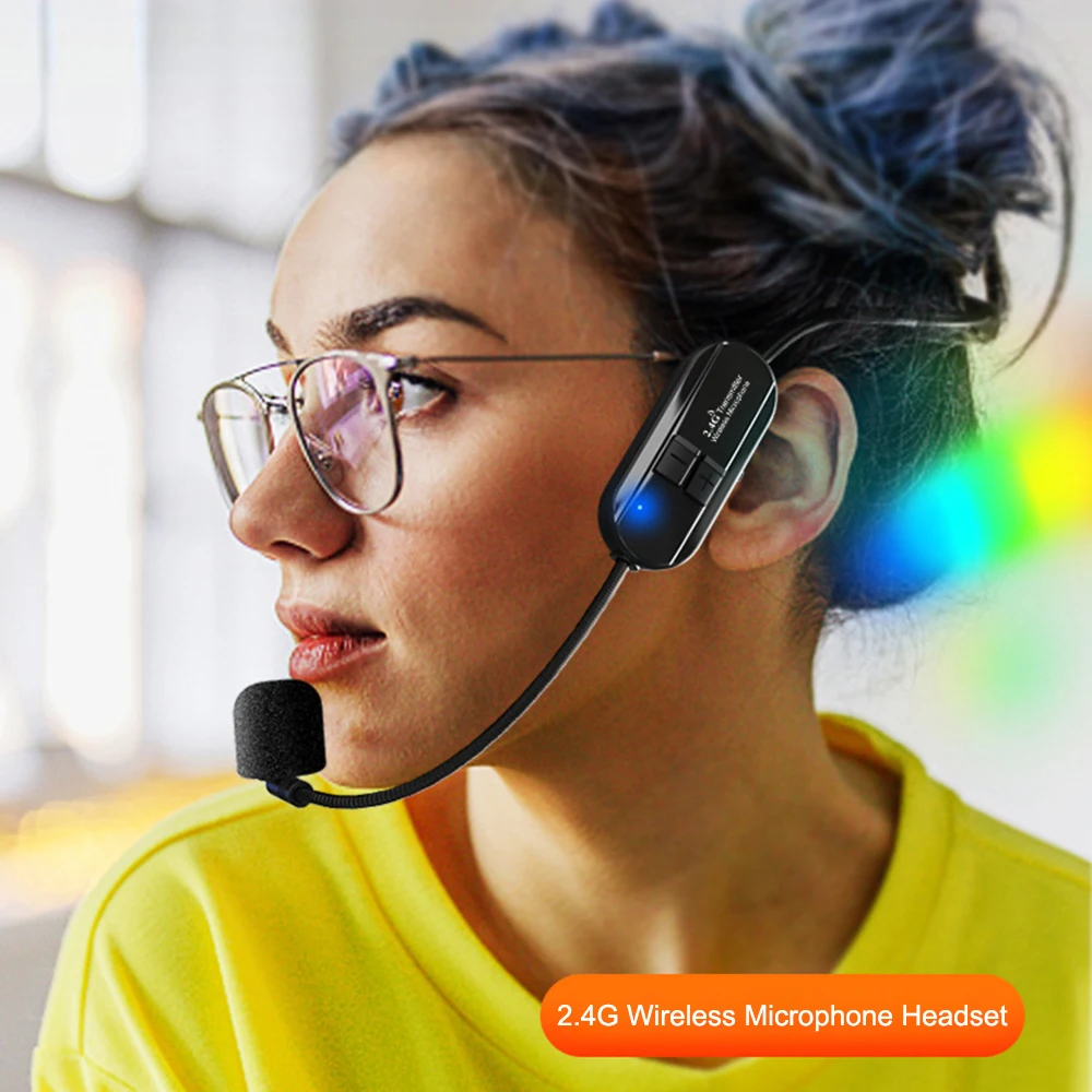 Juego de micrófono Lavalier inalámbrico montado en la cabeza de 2,4G, transmisor con receptor, amplificador de Audio, altavoz de voz, guía turística de enseñanza