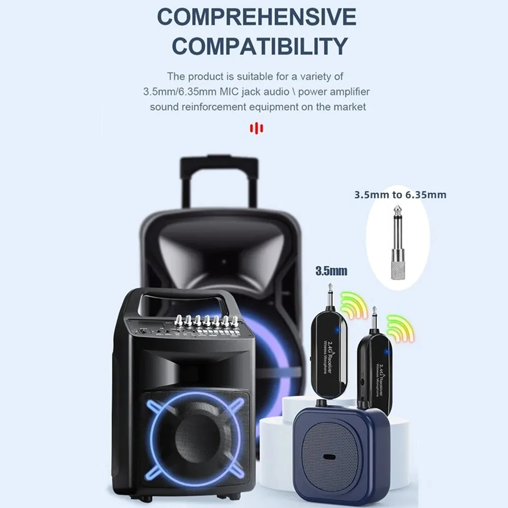 5.Amplia compatibilidad: Equipado con un cable de audio de 3,5 mm y un conector de 6,35 mm.Este micrófono inalámbrico es adecuado para altavoces de entrada de micrófono, tocadiscos, amplificadores de audio, sistemas Pa, mezcladores, amplificadores de voz y más medios de transmisión.No es compatible con altavoces Bluetooth, iPhone, PC y computadora portátil.El micrófono inalámbrico es adecuado para entrenadores de fitness, entrenadores giratorios, entrenadores de aeróbic, entrenadores de yoga, entrenadores de Pilates, deportes acuáticos, profesores de gimnasio, profesores, discursos, para grabaciones de vídeo/audio de YouTube y más.