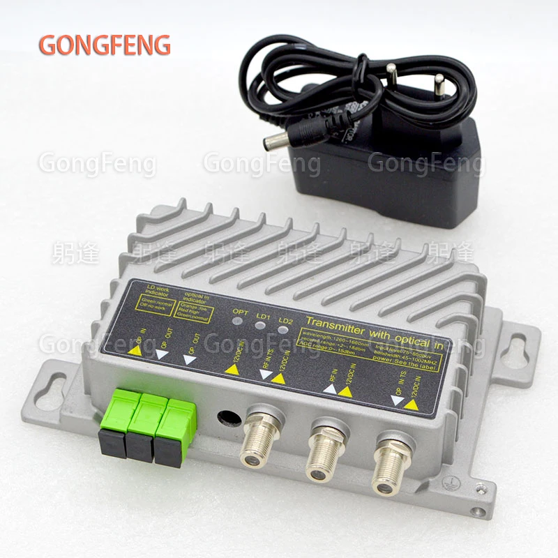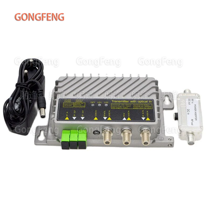 OTP01 1310nm Transmitter With Optical In specifically designed for CATV FTTH network. Its main feature is low power consumption,double output optical signal, with optical input and rf input two ways,AGC optical constant level output, small Volume and high reliability. Adopting aluminum alloy shell, with optical control AGC circuit built in, compact structure and external modular power supply make the installation and debugging very convenient. It is an ideal product to build FTTH CATV network.