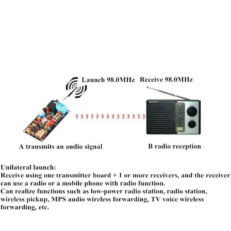 Frecuencia de trabajo: banda FM 85-115MHZ