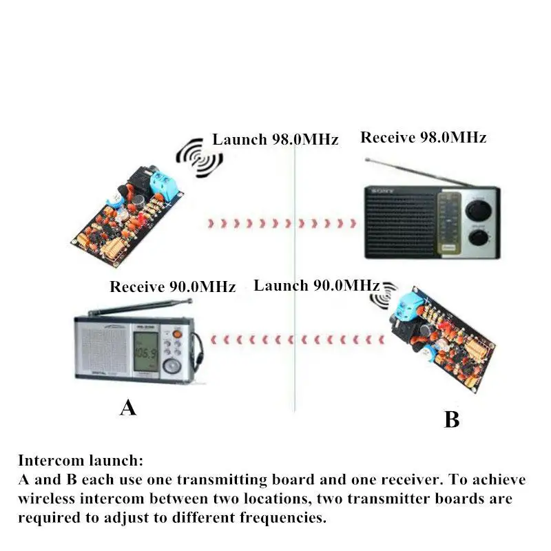Cuanto más corto sea el componente, mejor.Todos los componentes cerca de la placa de circuito, mejor será el efecto.Secuencia de instalación: primero instale la resistencia del anillo de color, el condensador cerámico, el micrófono, el LED y la bobina hueca....Resistencia del anillo de color:100 ohmios-marrón-negro-marrón, 10K-marrón-negro-naranja, 1M-marrón-negro-verde330 ohmios-naranja marrón, 4,7K-amarillo rojo púrpura, 47K-amarillo púrpura naranjaDiodo emisor de luz: el pin largo es + polo, el pin corto es poloResistencia ajustable.Esta resistencia es para ajuste de volumen, el ajuste en el sentido de las agujas del reloj aumenta el volumen y en el sentido contrario a las agujas del reloj disminuye el volumen.Micrófono electret: hay polaridades, el micrófono tiene dos pines y el pin conectado a la carcasa es el polo negativo.Condensador de porcelana: Sin polaridad, instálelo según la posiciónBobina de inductancia: sin polaridad, instale según la posiciónCondensador cerámico ajustable C8: preste atención a la instalación inversa, no lo coloque boca abajo; instálelo según la dirección del marcoSe pueden instalar otros componentes de acuerdo con las marcas del tablero de carretera, y generalmente son graves y no tienen errores.Soldadura: La placa que no transmite es una señal de alta frecuencia, por lo que antes de soldar las clavijas del componente, intente acortar la longitud de las clavijas, porque para las señales de alta frecuencia, un cable también puede ser equivalente a un inductor.El tiempo de soldadura no debe ser demasiado largo.Generalmente, el tiempo de cada punto de soldadura se controla dentro de 2 segundos para evitar que los pines de los componentes se dañen durante el calentamiento durante mucho tiempo.Antes de soldar, limpie el cabezal del soldador eléctrico y el efecto de soldadura es mejor.Depuración: después de instalar todos los componentes, primero encienda el interruptor de encendido, la luz LED normal se encenderá y la corriente se puede medir con un multímetro.El tamaño actual puede consultar la hoja de datos de prueba del módulo.Generalmente, la corriente no es muy diferente y generalmente no hay ningún problema.La frecuencia de transmisión se puede cambiar ajustando el condensador ajustable.La frecuencia es 85-115Hz.Si tiene habilidad práctica, también puede modificar el mapa de frecuencia usted mismo.Puedes modificar el rango de frecuencia cambiando L1 C8 C9.Este circuito es muy estable.Puede admitir hasta aproximadamente 200 MHZLa base de audio funciona en un estado de captación inalámbrica sin insertar audio.Cuando se inserta audio de 3,5 mm en la base de audio, cambiará automáticamente al estado de reenvío de audio y el cable de audio se conectará al televisor MP3 del teléfono móvil para lograr la función de reenvío de audio inalámbrico.