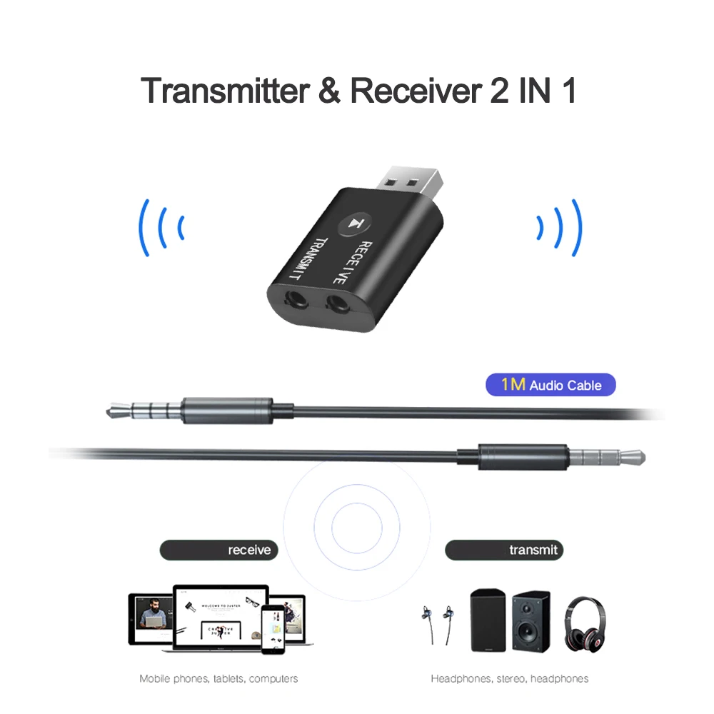 Comprar Transmisor receptor de Audio 2 en 1, adaptador inalámbrico auxiliar con conector de 3,5mm para coche, TV, PC, USB, Bluetooth, compatible con 5,0