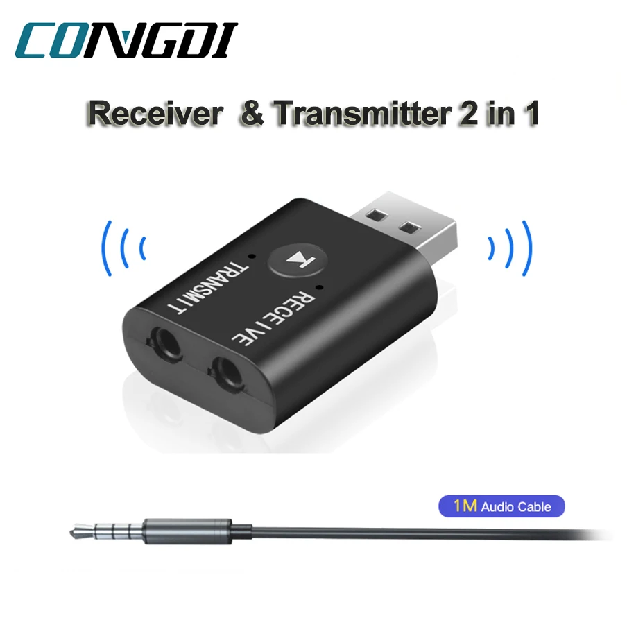 Comprar Transmisor receptor de Audio 2 en 1, adaptador inalámbrico auxiliar con conector de 3,5mm para coche, TV, PC, USB, Bluetooth, compatible con 5,0