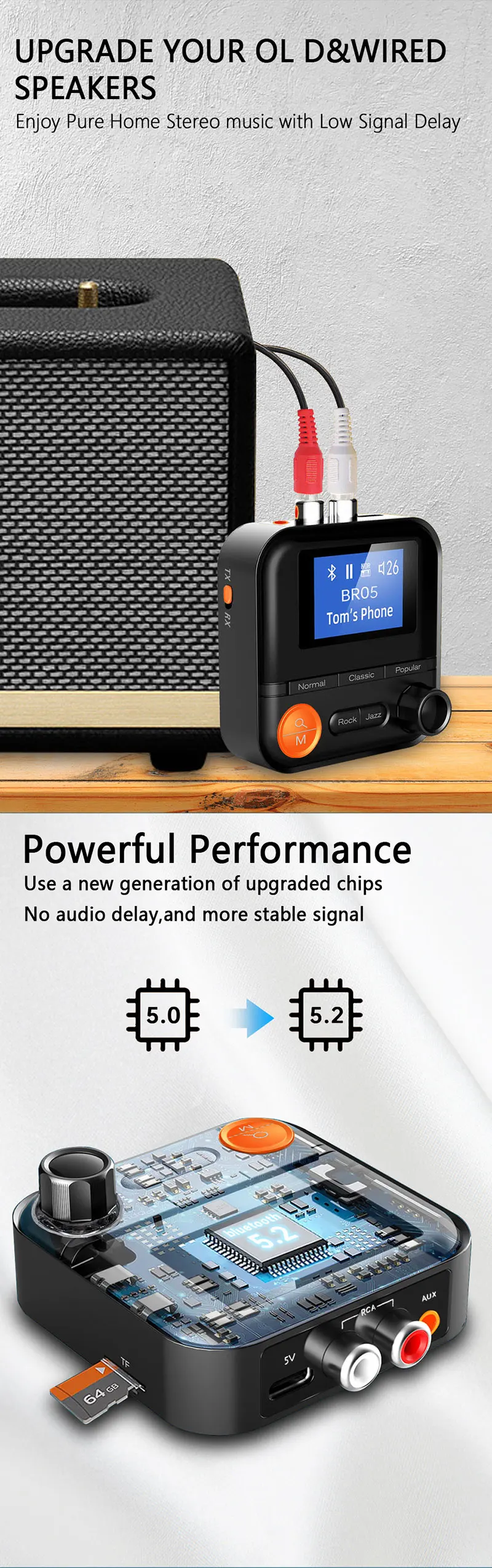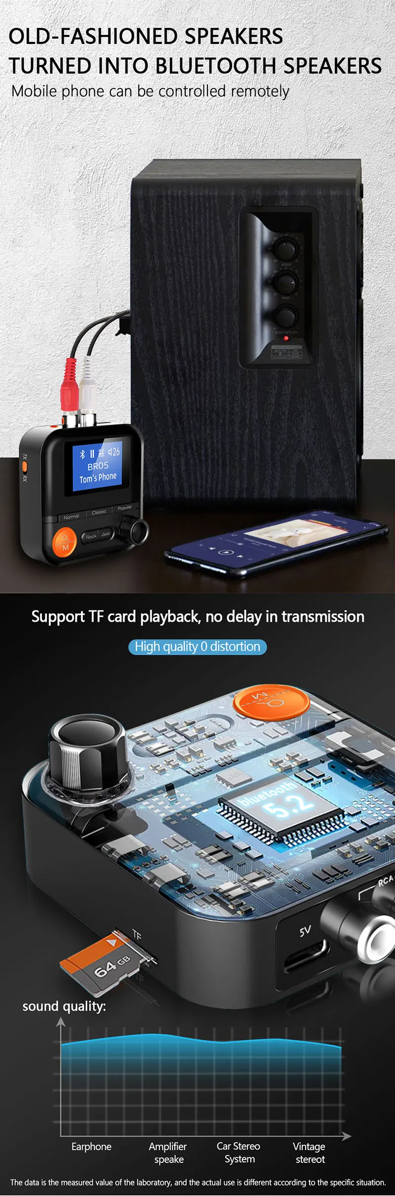 Comprar Transmisor receptor de Audio Bluetooth 5 modos EQ música HIFI Normal + clásico + Popular + Rock + Jazz adaptador inalámbrico 3,5 MM AUX 2 RCA TF