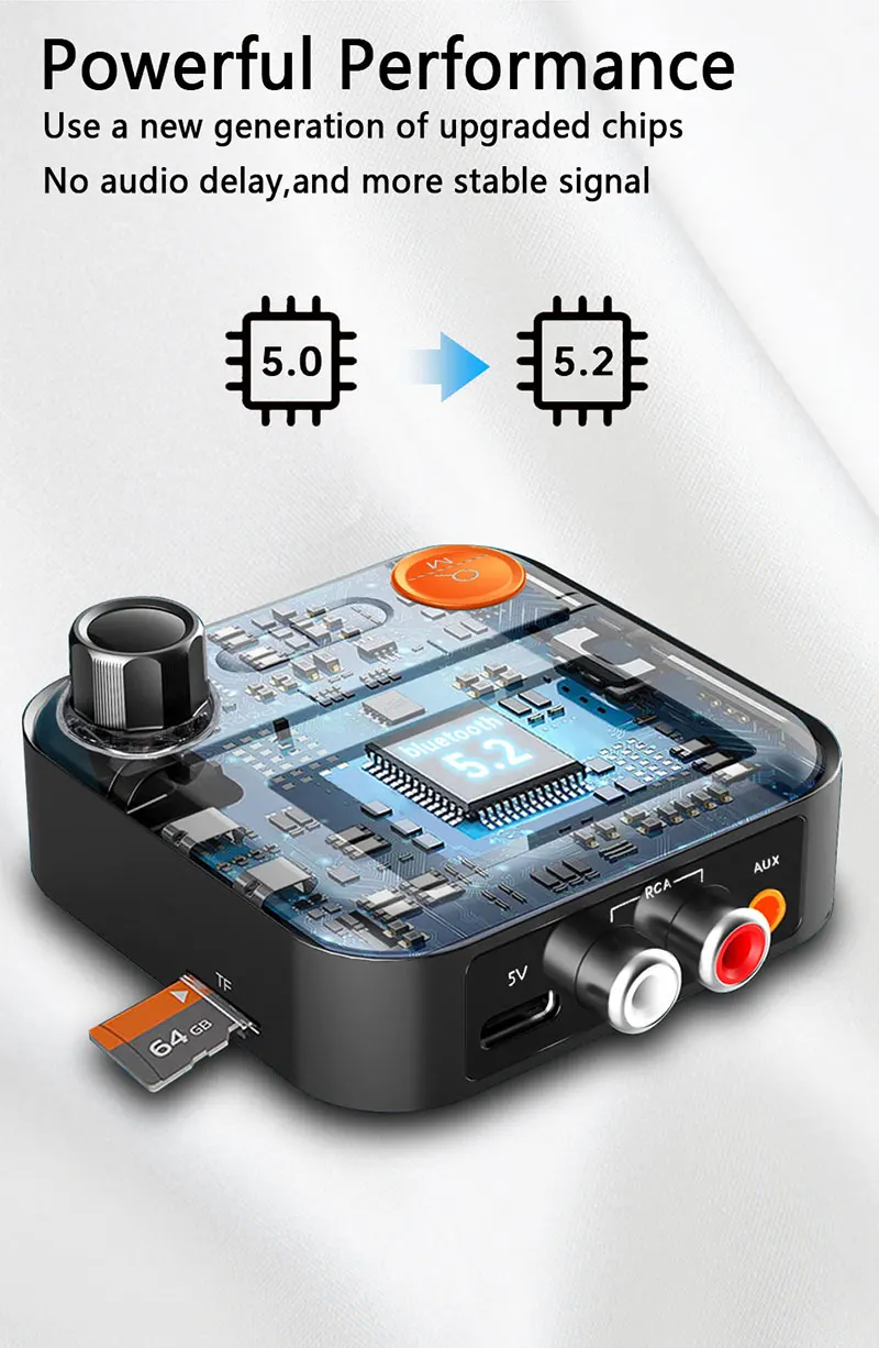 6.Super Stable Connection: Our Bluetooth audio adapter is fitted with a Bluetooth 5.2 chip for steady pairing, fast transmission and a wide signal range (33 feet). With the 3.5mm AUX port and 2 RCA port, it can be connected to non-Bluetooth car audio systems, home stereo, wired headphone/speaker, Amplifier/Home Theater.etc. Then you can enjoy wireless Hi-fi music streaming!