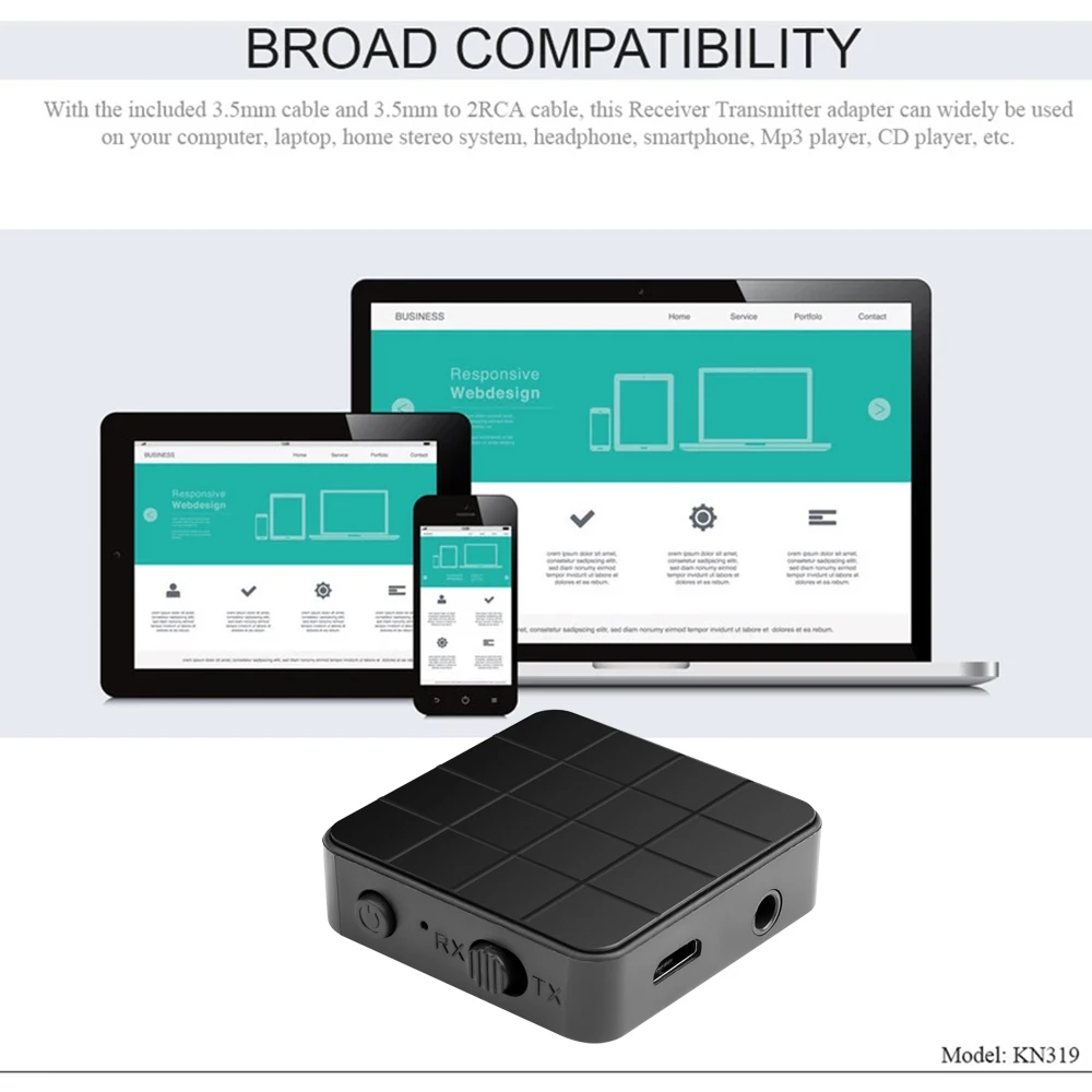 Comprar Transmisor receptor de Audio Bluetooth 5,0, adaptador inalámbrico estéreo de música con conector auxiliar RCA de 3,5 MM para PC, TV, auriculares, altavoz para coche
