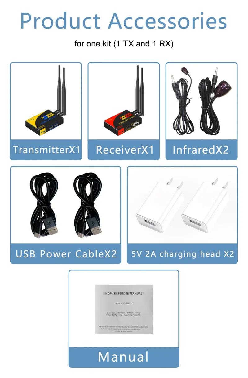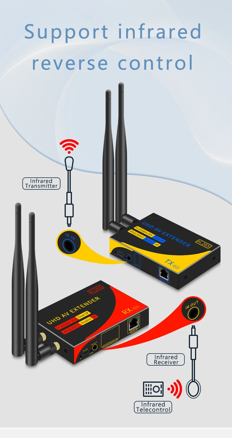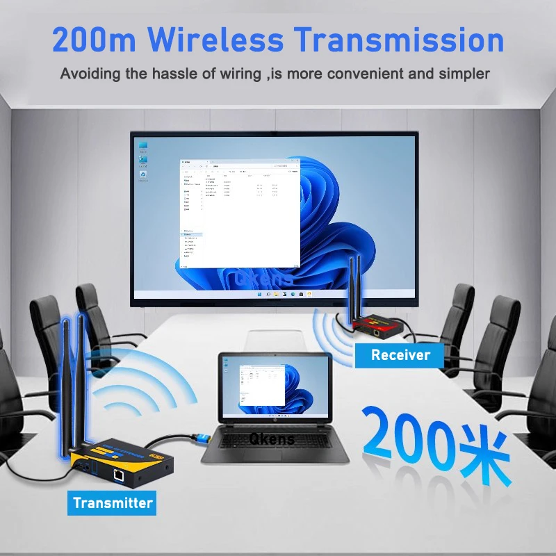 1.1080p o 4K opcional; 100m/150m/200m Opcional, cómprelo correctamente. 2. Con las barreras de aumento, la distancia de transmisión se acortará en consecuencia, La distancia final estará sujeta al uso real. Le recomendamos utilizar este producto en un espacio libre de barreras.