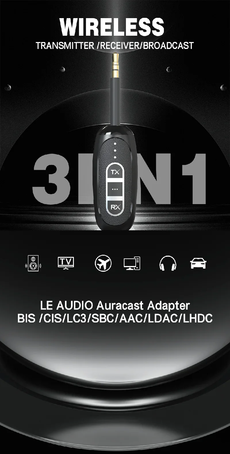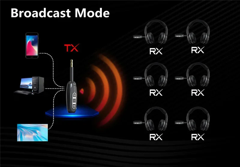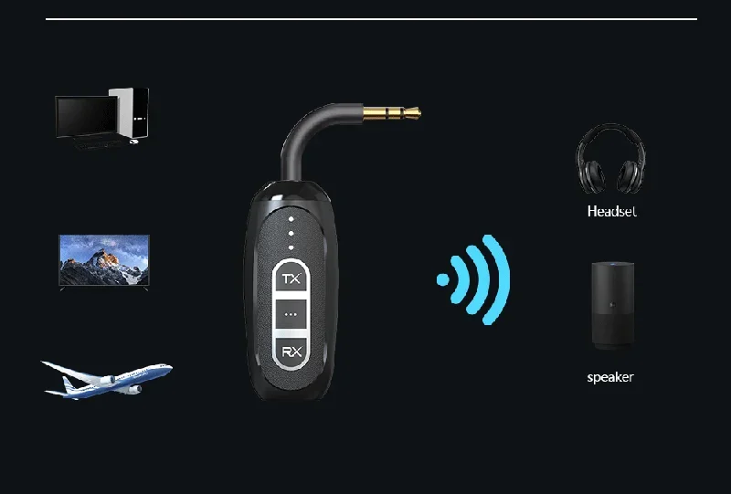 Este dispositivo se puede utilizar junto con un televisor para avanzar sonido de forma inalámbrica a auriculares o parlantes Bluetooth.