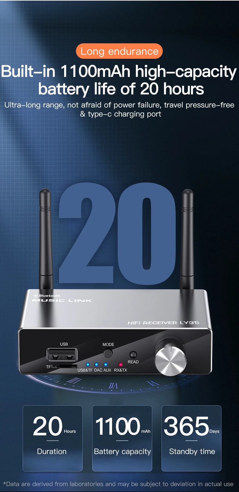 【Batería incorporada】 Batería integrada de 1100mAh, puede durar aproximadamente 20 horas.