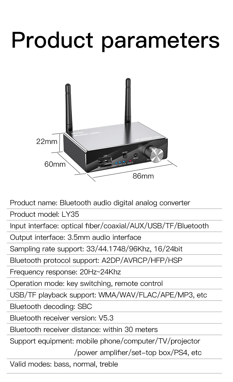1x convertidor de Adaptador de audio Bluetooth LY35 DAC