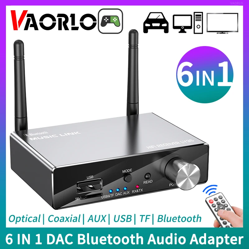 Comprar Transmisor receptor Bluetooth 5,3 DAC 6 en 1, óptico Coaxial, AUX, RCA, USB, TF, adaptador de Audio inalámbrico, convertidor Digital a analógico