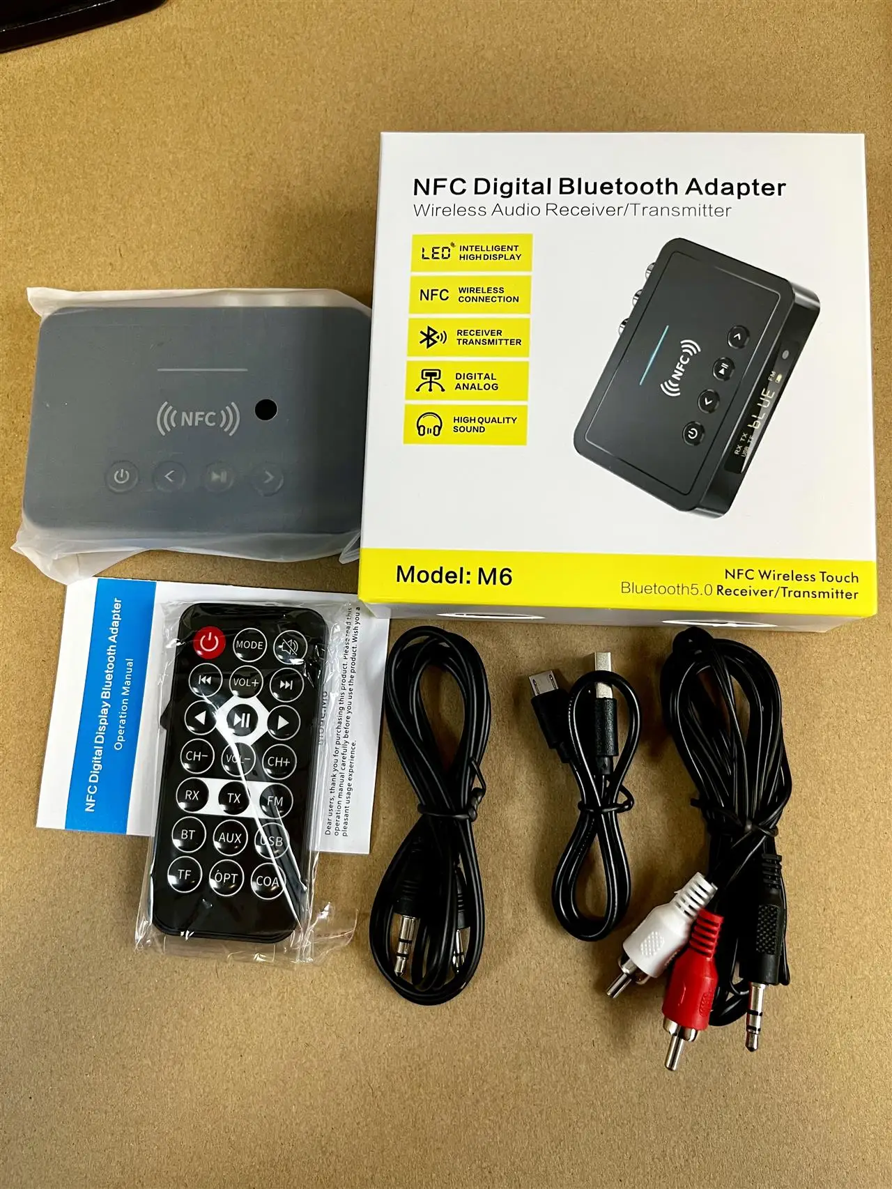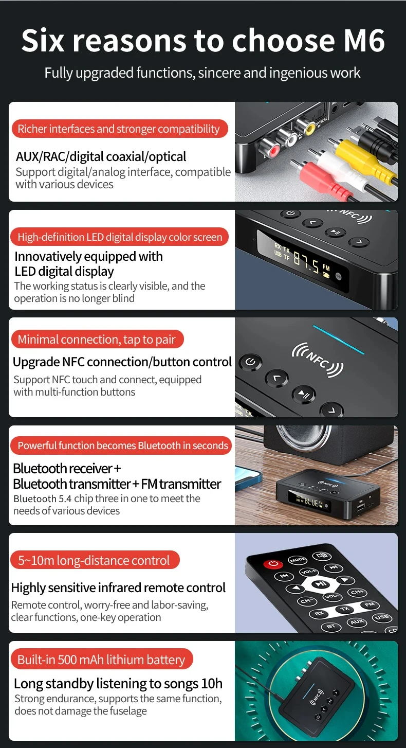 Comprar Transmisor receptor Bluetooth 5,4 FM estéreo AUX 3,5mm Jack RCA óptico llamada con manos libres NFC adaptador de Audio inalámbrico TV altavoz de coche