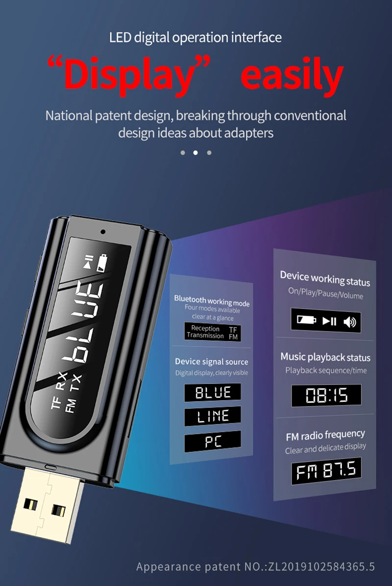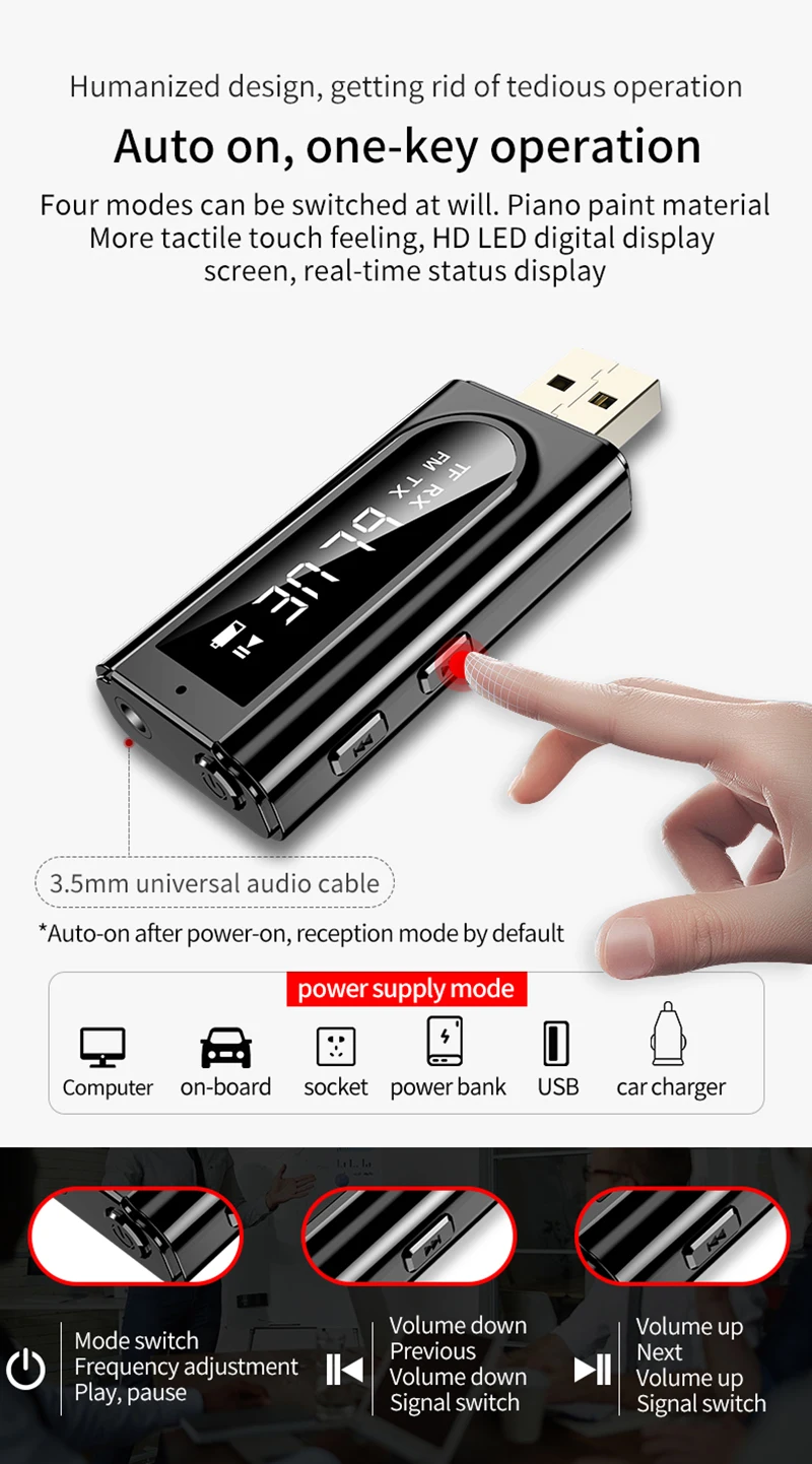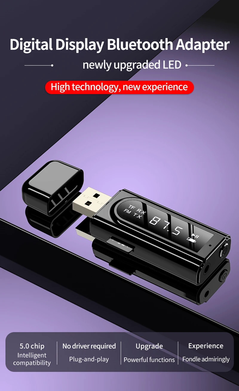 1. Usando el chip Bluetooth 5,0 con pantalla digital LED, el estado de funcionamiento es claramente visible;