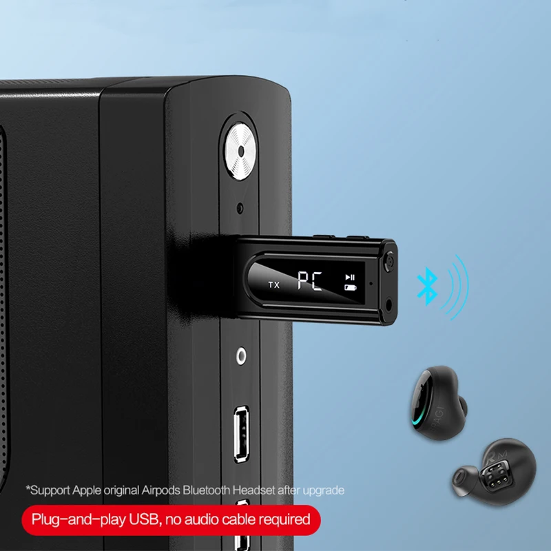 * Modo de transmisor TX para: TV/PC/proyector/amplificador de potencia/caja de TV/auriculares Bluetooth/auriculares/altavoz Bluetooth, etc.