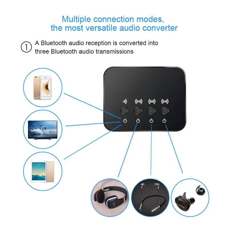 El Adaptador de audio de diente azul se utiliza principalmente para dispositivos sin salida de diente azul, como TV, ordenador, etc.