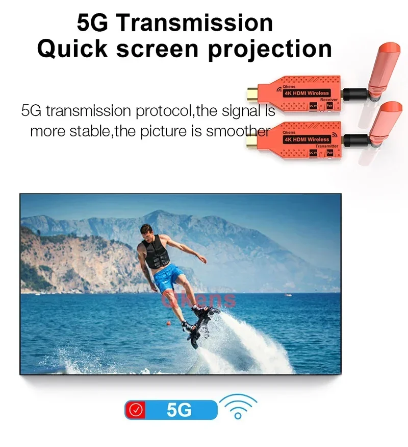 1.Transmisión de audio y vídeo HDMI a través del protocolo de transmisión inalámbrica incorporado, sin necesidad de wifi ni Internet