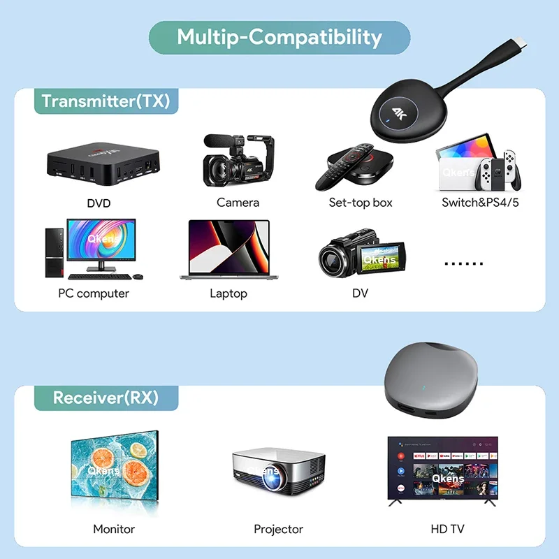 1.Transmisión de audio y vídeo HDMI a través del protocolo de transmisión inalámbrica incorporado, sin necesidad de wifi ni Internet