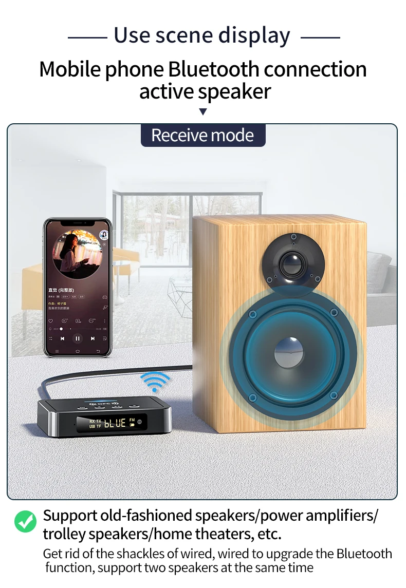 19. Modo receptor para altavoz con cable/altavoz doméstico/amplificador de potencia/auriculares/kit para coche