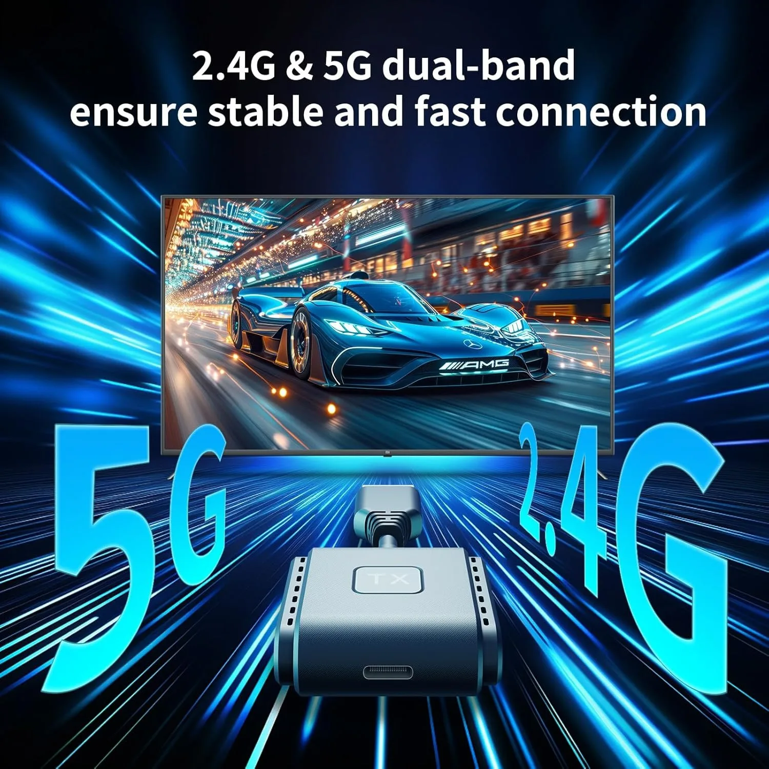 2.4G/5G dual band: The hdmi-compatible wireless transmitter and receiver built in dual band chip (2.4G & 5G), with fast transmission, strong signal wirelessly streams the video and audio up to 160ft long transmission range, low latency around 0.05s. The signal can penetrate wall, you can use the wireless transmitter in one room, use the wireless receiver in an adjoining room. Note: the corners of the wall will shorten signal or cause signal loss