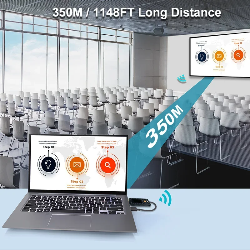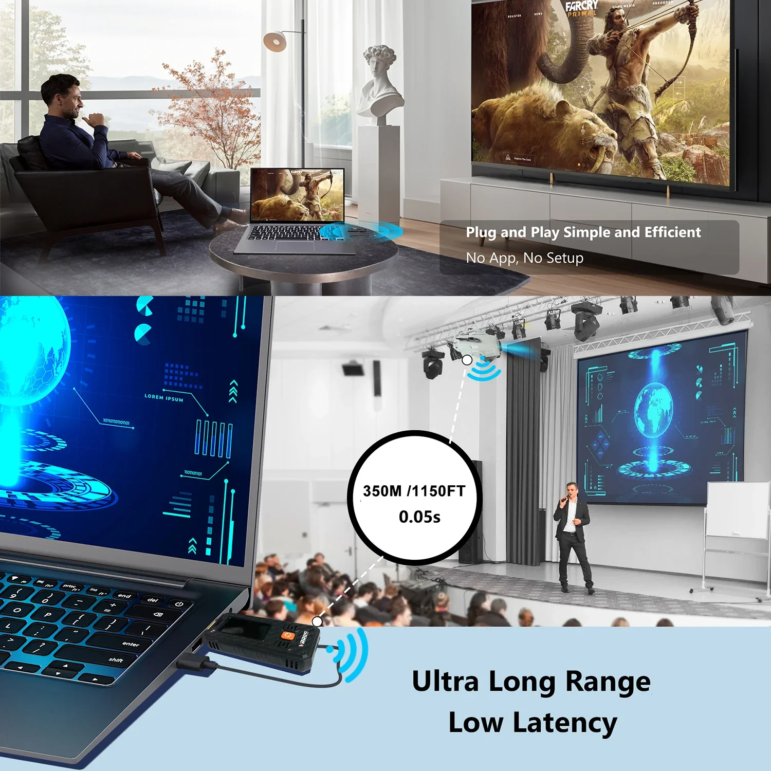 Comprar Transmisor y receptor inalámbrico HDMI de 350m, extensor de Audio y vídeo, ordenador portátil, PC a adaptador de pantalla de TV, puede cambiar frecuencia