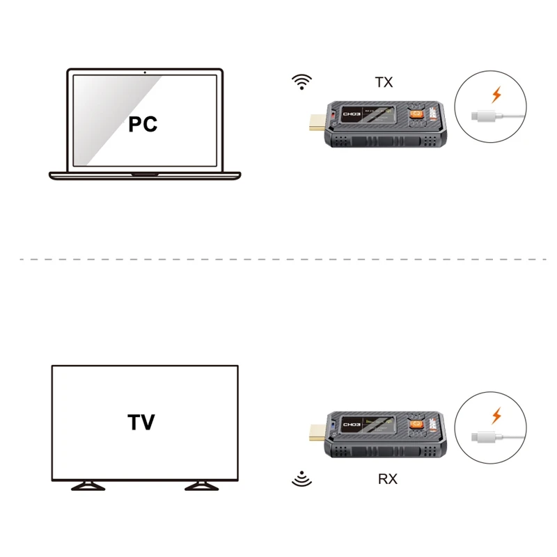 Rompe el límite de distancia de transmisión del cable HDMI, no se necesita instalación complicada de cables ni cables.