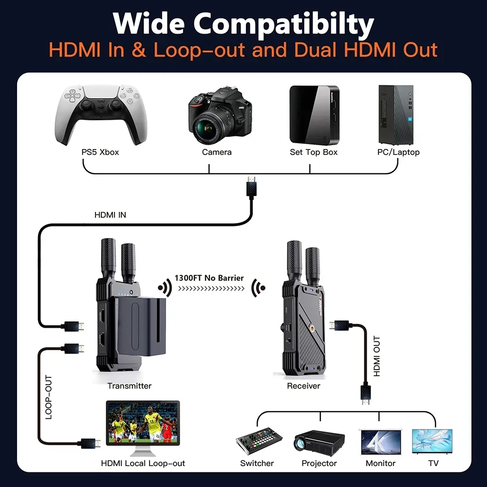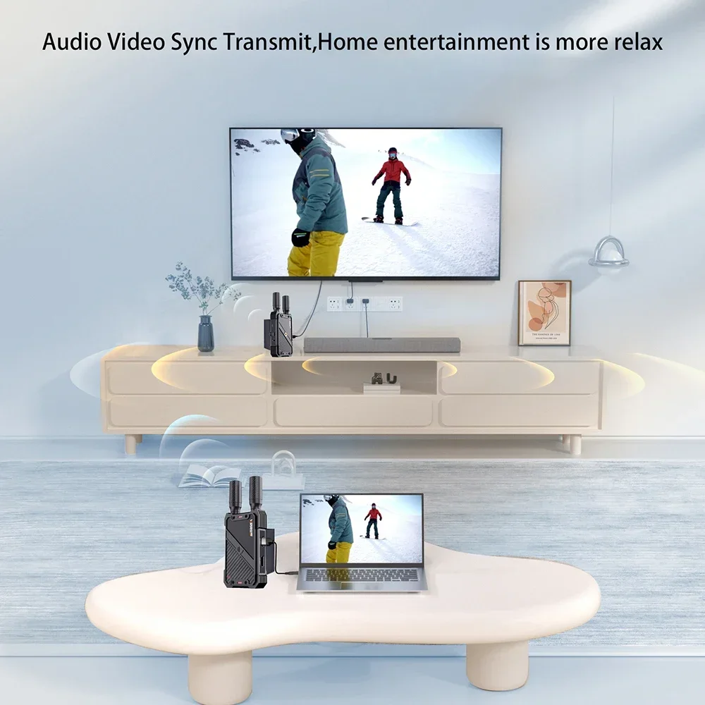 -Este kit transmisor-receptor inalámbrico se actualiza con decodificación H.265, puede proyectar fácilmente el