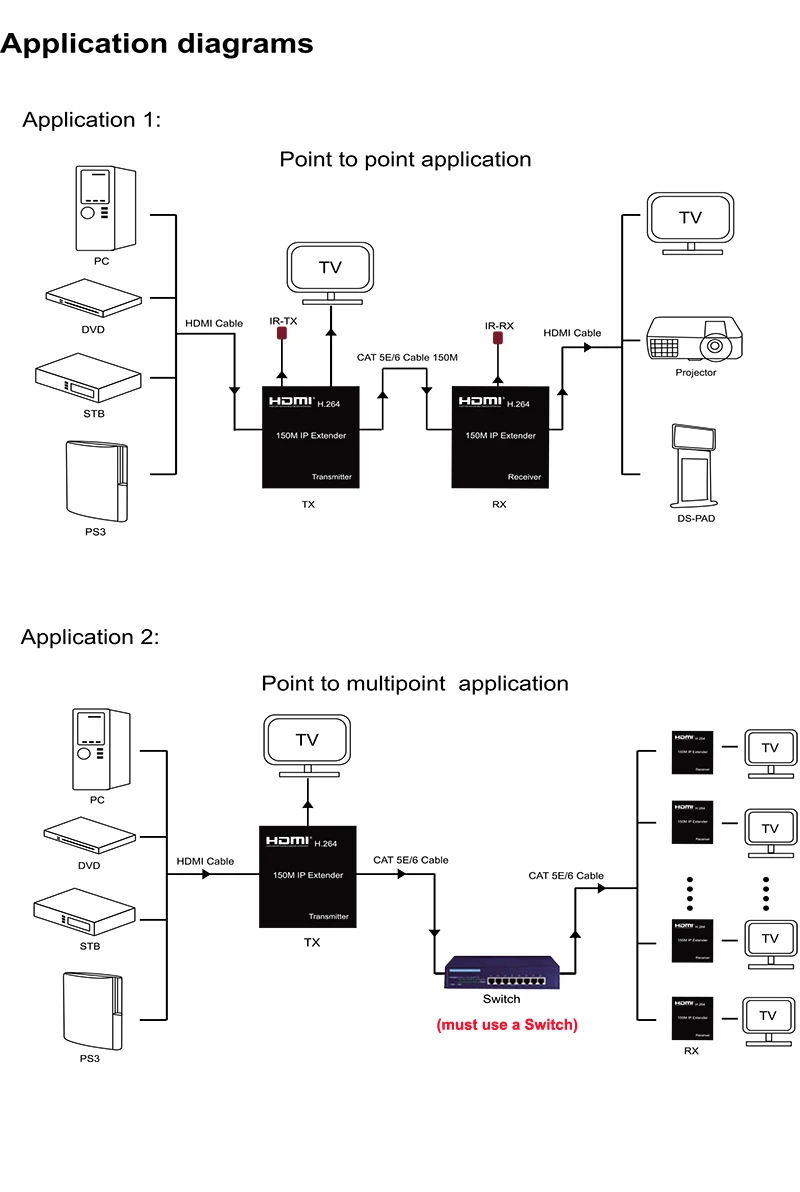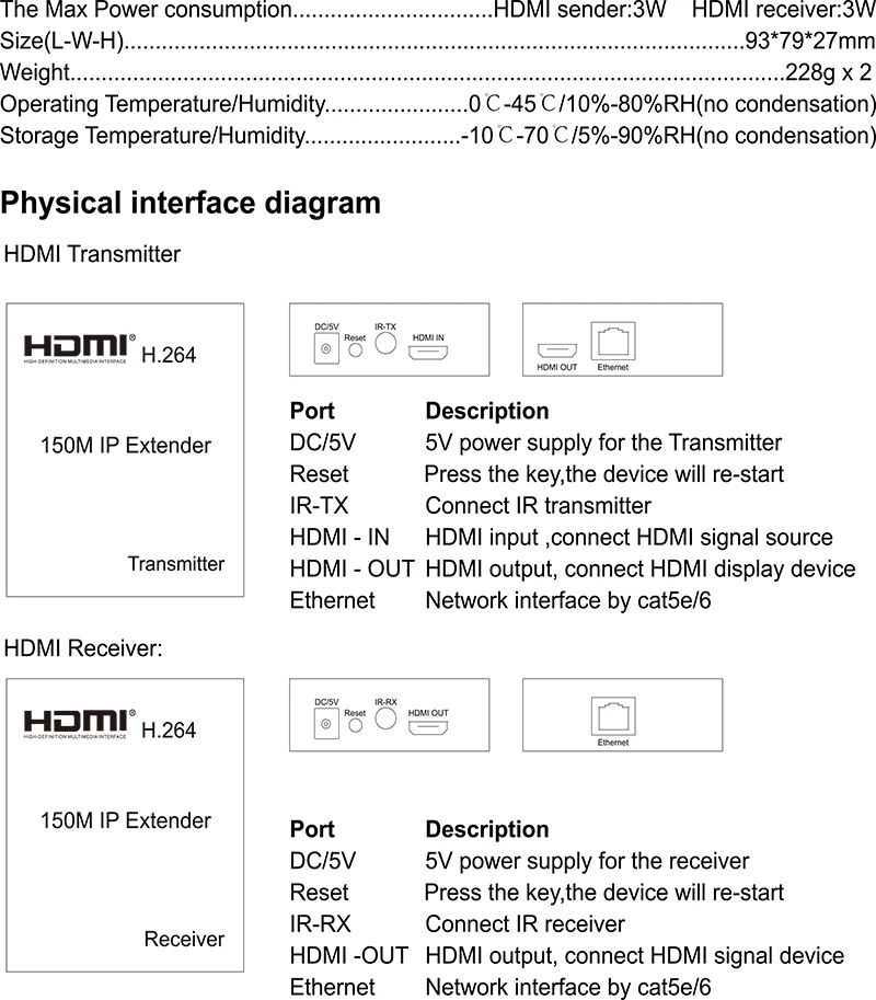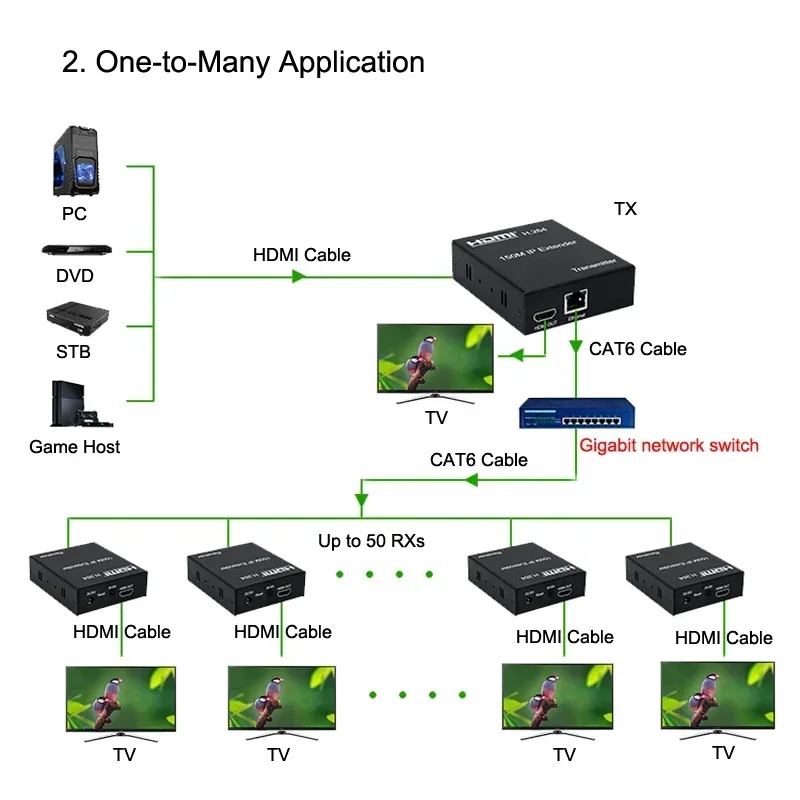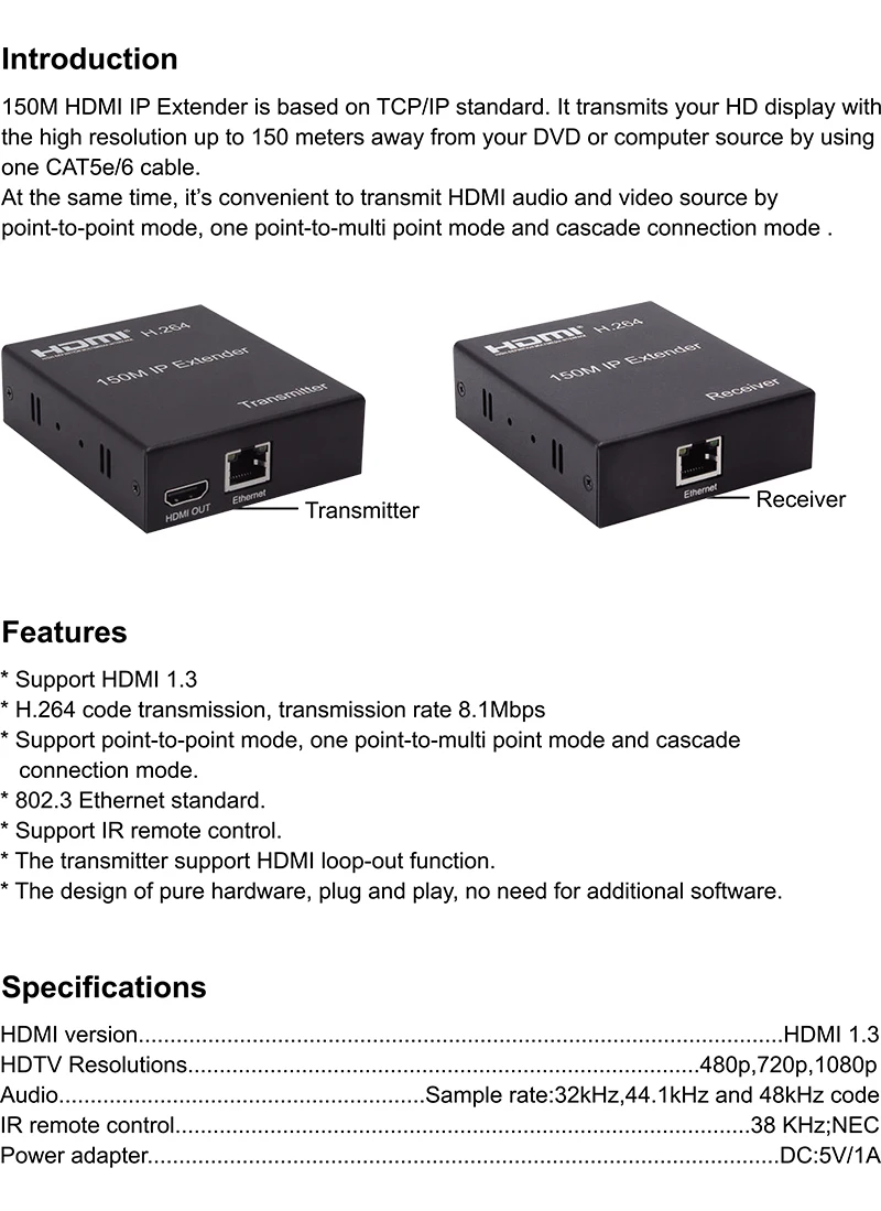 Comprar Transmisor y receptor de vídeo H264, extensor IP HDMI de 150M a través de RJ45 CAT6, Cable Ethernet, divisor de pantalla, compatible con 1 TX a Multi RX