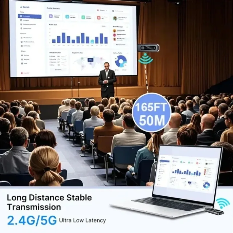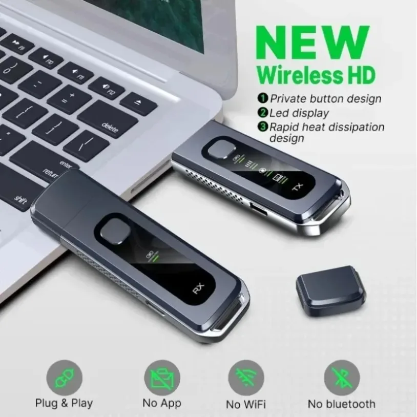 2.Transmisión de audio y vídeo Compatible con HDMI a través del protocolo de transmisión inalámbrica incorporado, sin necesidad de wifi ni internet.