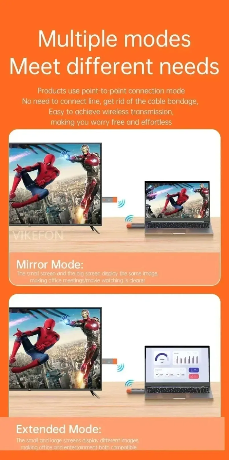 【Altamente compatible】La interfaz HDMI es altamente compatible y puede ser convertible a otras interfaces.VIKEFON El dispositivo con interfaz HDMI se puede utilizar directamente y el dispositivo sin interfaz HDMI se puede utilizar con un convertidor HDMI.Transmita de forma inalámbrica video 3D y audio digital de alta definición de 1080p verdaderos a su televisor o proyector.Mire películas y programas de televisión desde su computadora portátil, PC, MacBook, iPad Pro, receptor A/V, consola de juegos, PS4/5, Xbox, Nintendo Switch, cable/satélite
