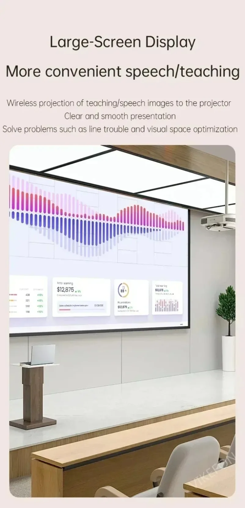 4.Es ampliamente utilizado para videoconferencias en pantalla grande/entretenimiento en el hogar/aprendizaje en línea/entrenamiento educativo del habla empresarial/juegos, etc.Más impactante, más relajante y es mejor para proteger los ojos.
