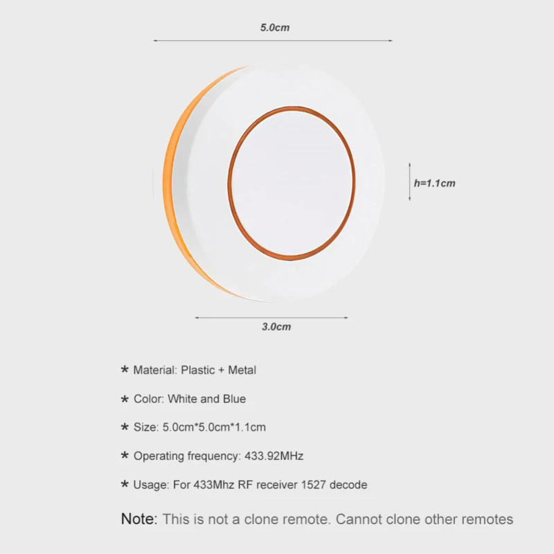 Comprar Transmisor de RF redondo de 1 botón, interruptor de Control remoto inalámbrico de 433 Mhz, CC de 12V, 24V, 1 canal, 1/2/3 piezas