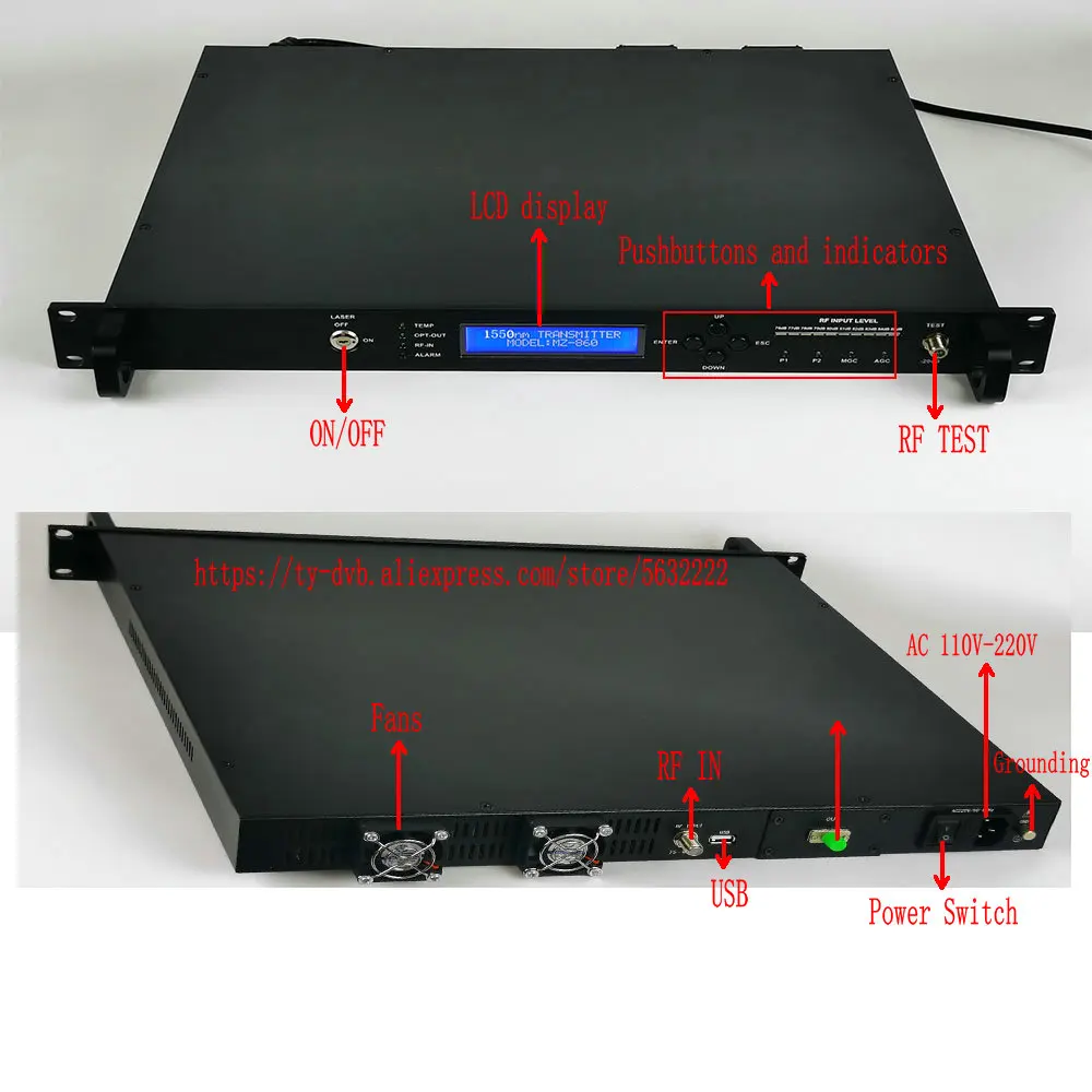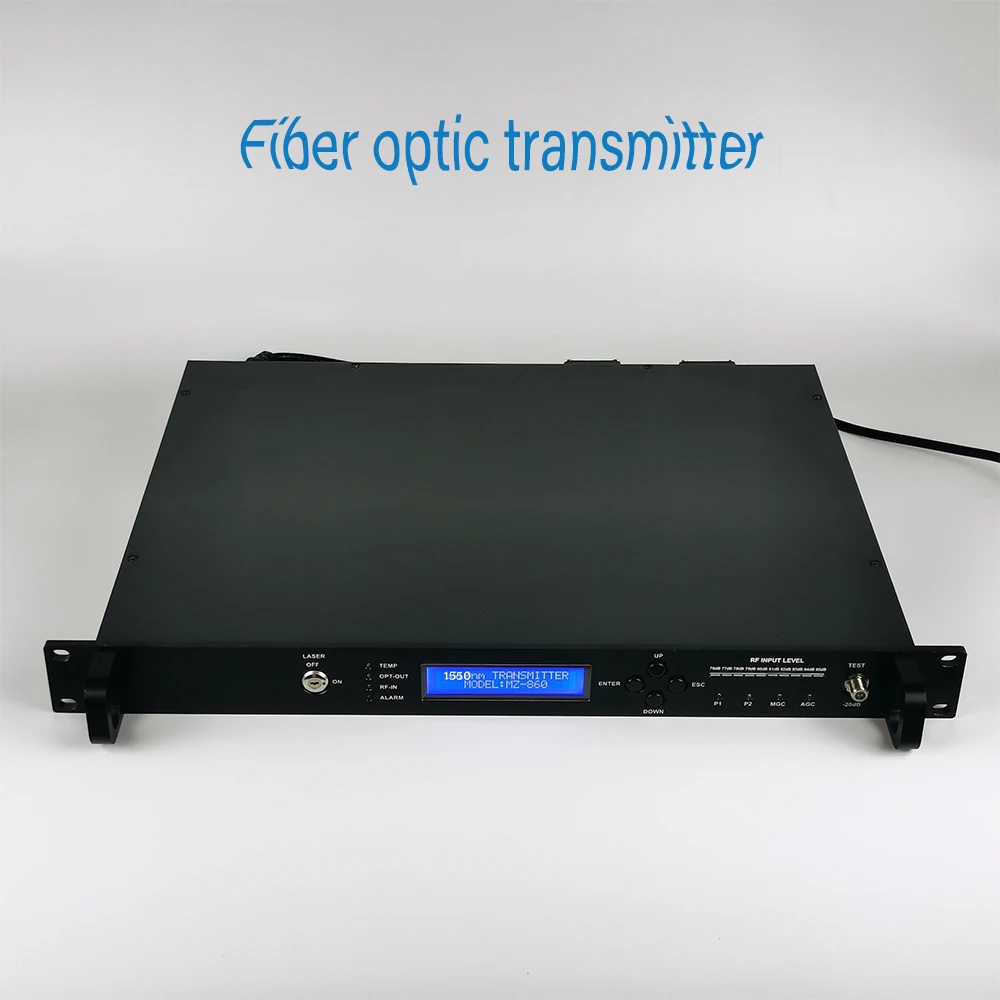 Comprar Transmisor RFoG de doble longitud de onda 1310/1550nm, salida ajustable de 5-13dB, equipo de transmisión de fibra óptica CATV para hotel
