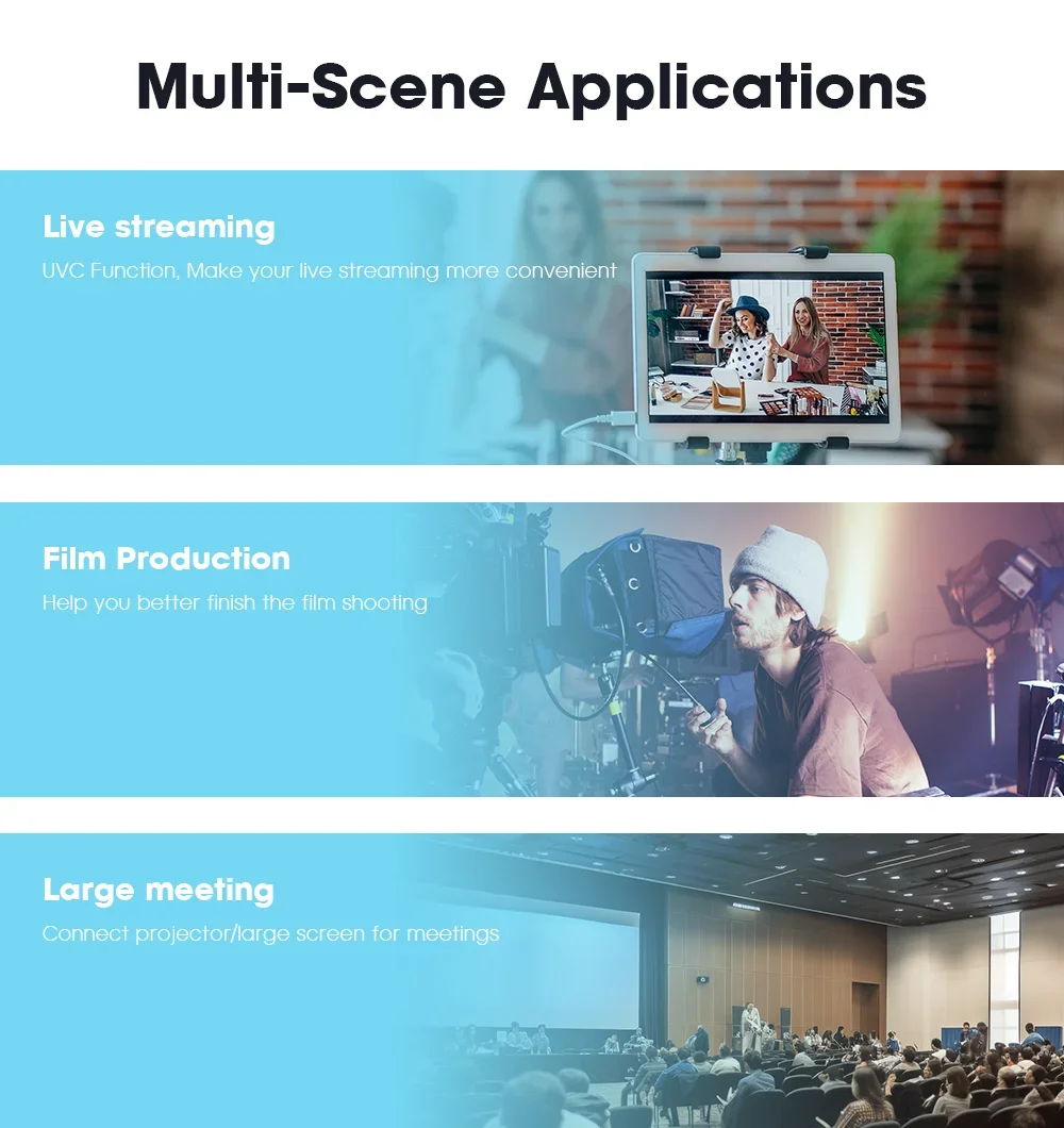 Aplicable a múltiples escenarios: transmisión en directo, producción de películas, eventos deportivos, grandes reuniones, etc.