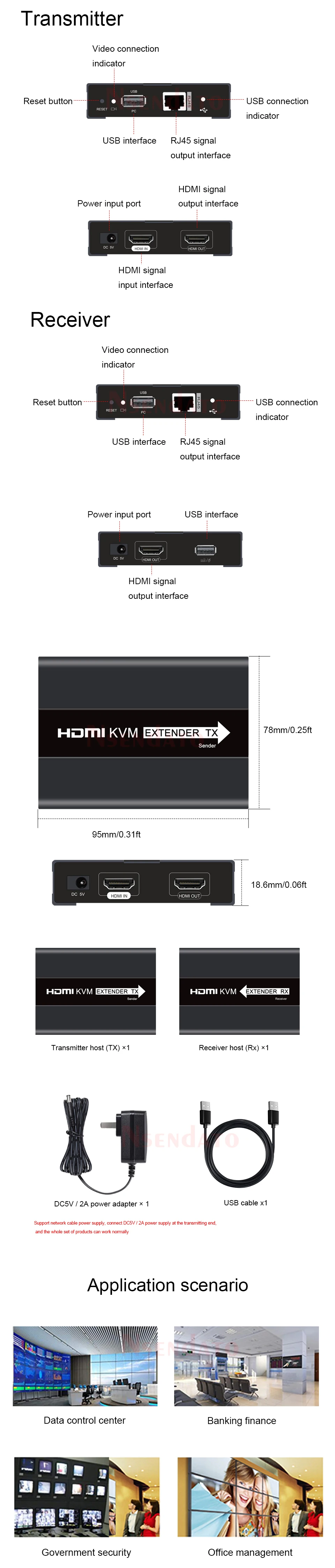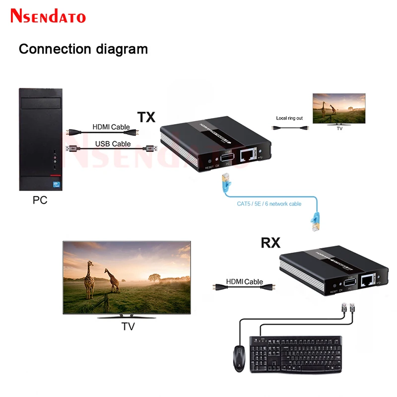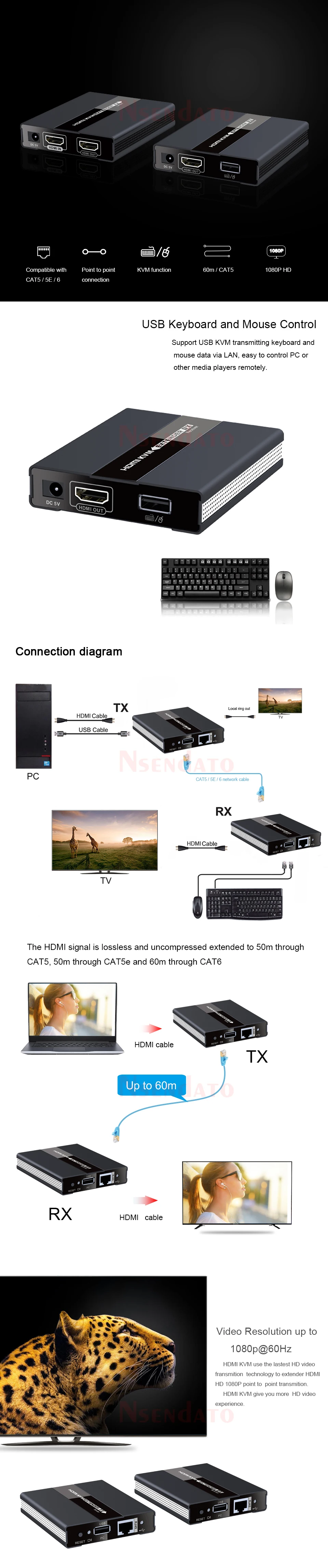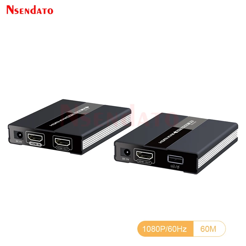 LKV371KVM 60m HDMI USB KVM Extender Over Cat5/5E/6 RJ45 HDMI Transmisor de video inalámbrico Receptor para USB 2,0 KVM Teclado Ratón