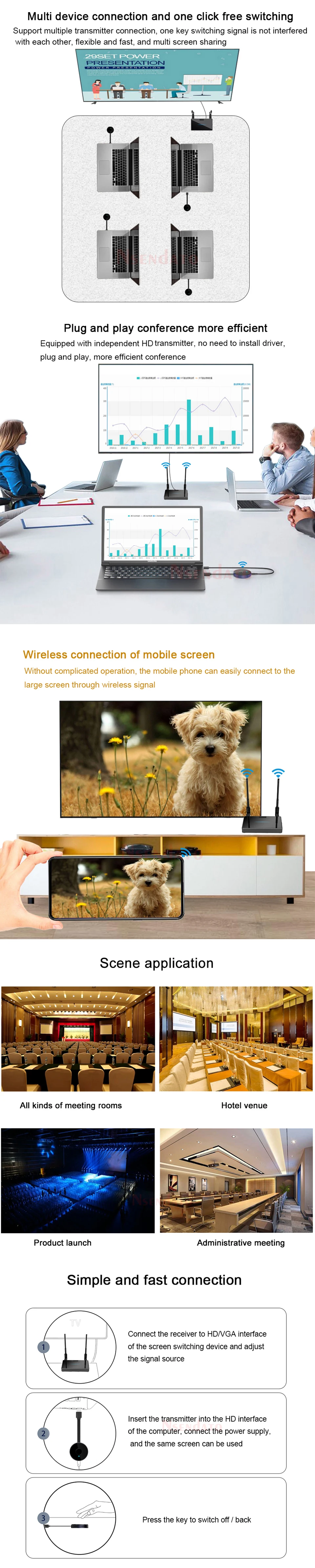Capacidad de decodificación: 1080P 60Hz1. Este dispositivo es adecuado para dispositivos con salida HD, como: ordenador, decodificadores, DVD y otros dispositivos.3. Admite conmutación libre de múltiples transmisores.4. Admite WIFI de doble banda 5G/2,4G.1. Este dispositivo es adecuado para dispositivos con salida HD, como: ordenador, decodificadores, DVD y otros dispositivos.3. Admite conmutación libre de múltiples transmisores.Información del conjunto completo: