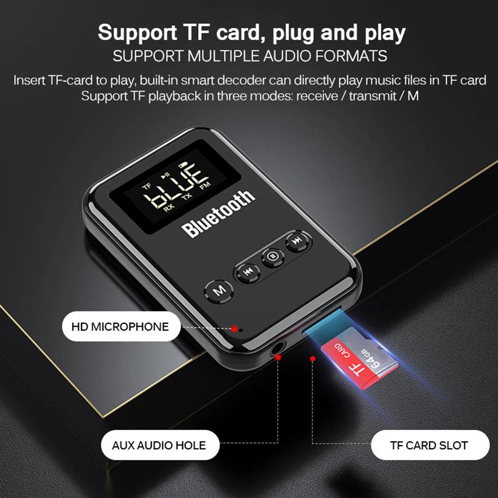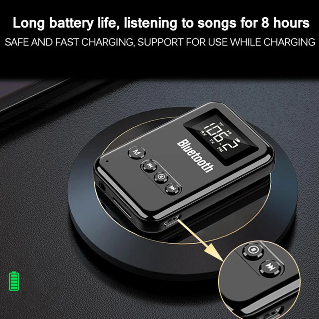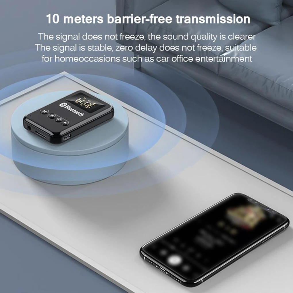Comprar Transmisor y receptor de Audio 2 en 1 con Bluetooth 5 0, sistema estéreo para coche, adaptador de Audio con pantalla LCD