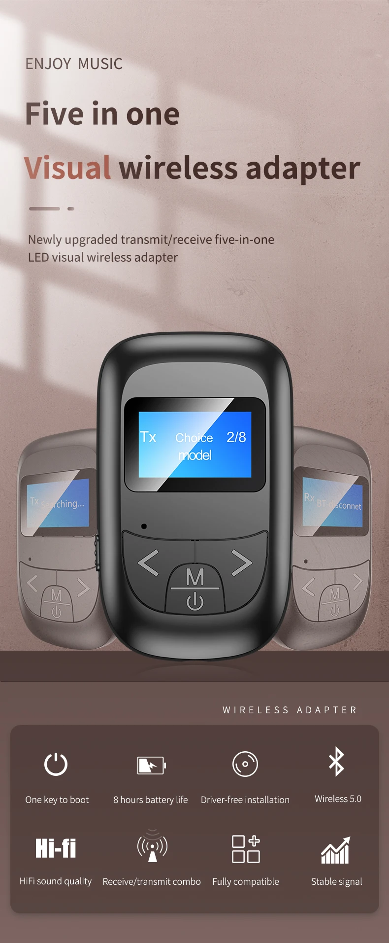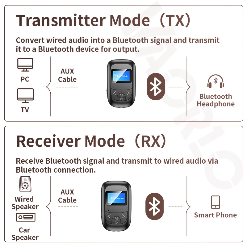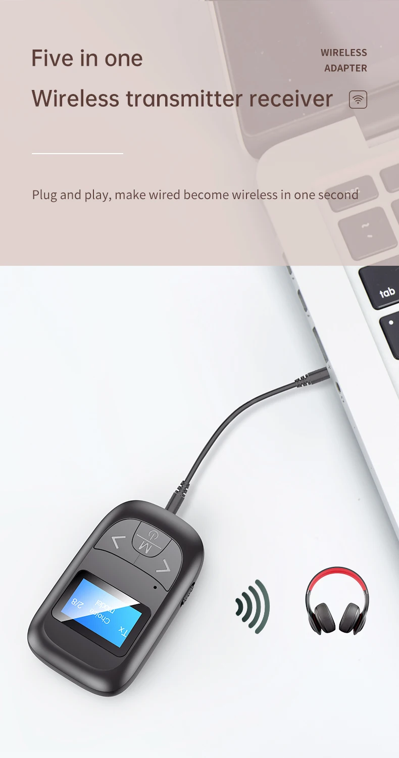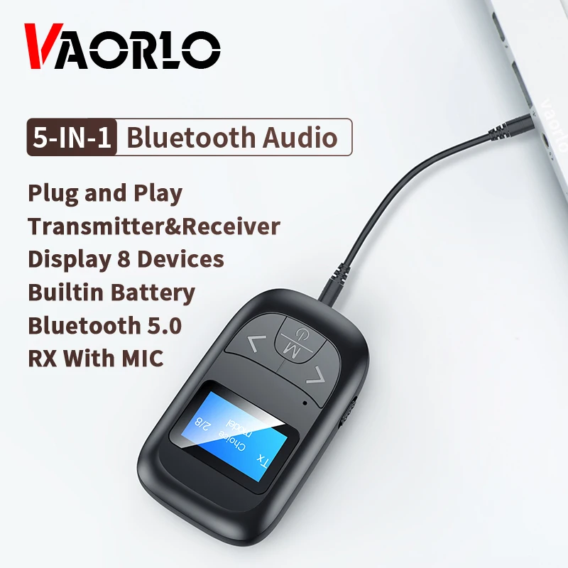 Comprar Transmisor y receptor de Audio 5 en 1 con Bluetooth 5,0, pantalla LCD, micrófono, manos libres, llamadas, 3,5mm, AUX, adaptador inalámbrico estéreo para coche