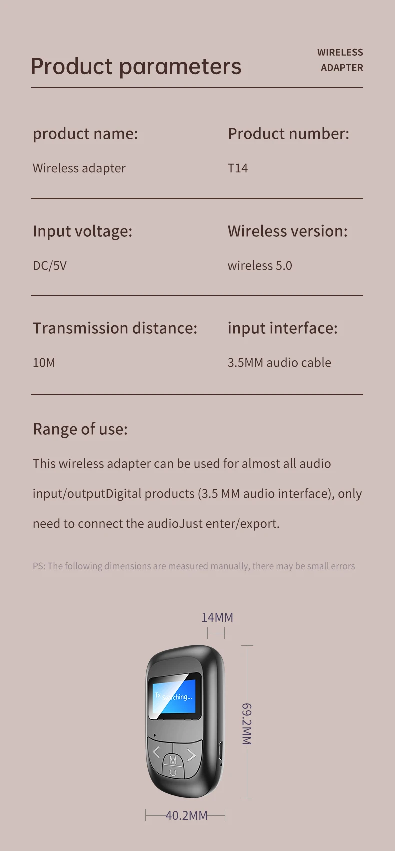 1: Adaptador Bluetooth T14 * 1