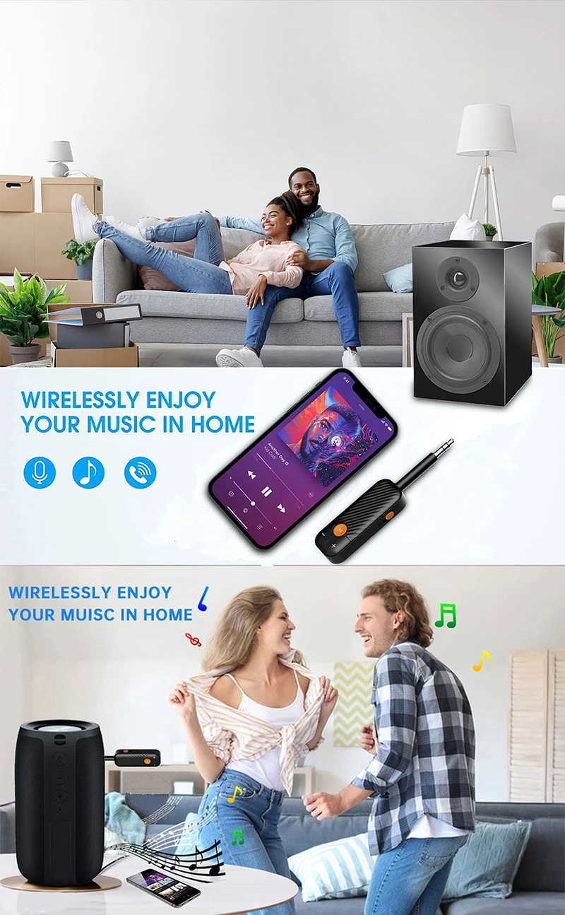 ---The function of the Bluetooth receiver is to add Bluetooth wireless function to the wired speaker/headphone, so that the Bluetooth-enabled device such as the mobile phone can be wirelessly connected to the wired speaker/headphone through the adapter.