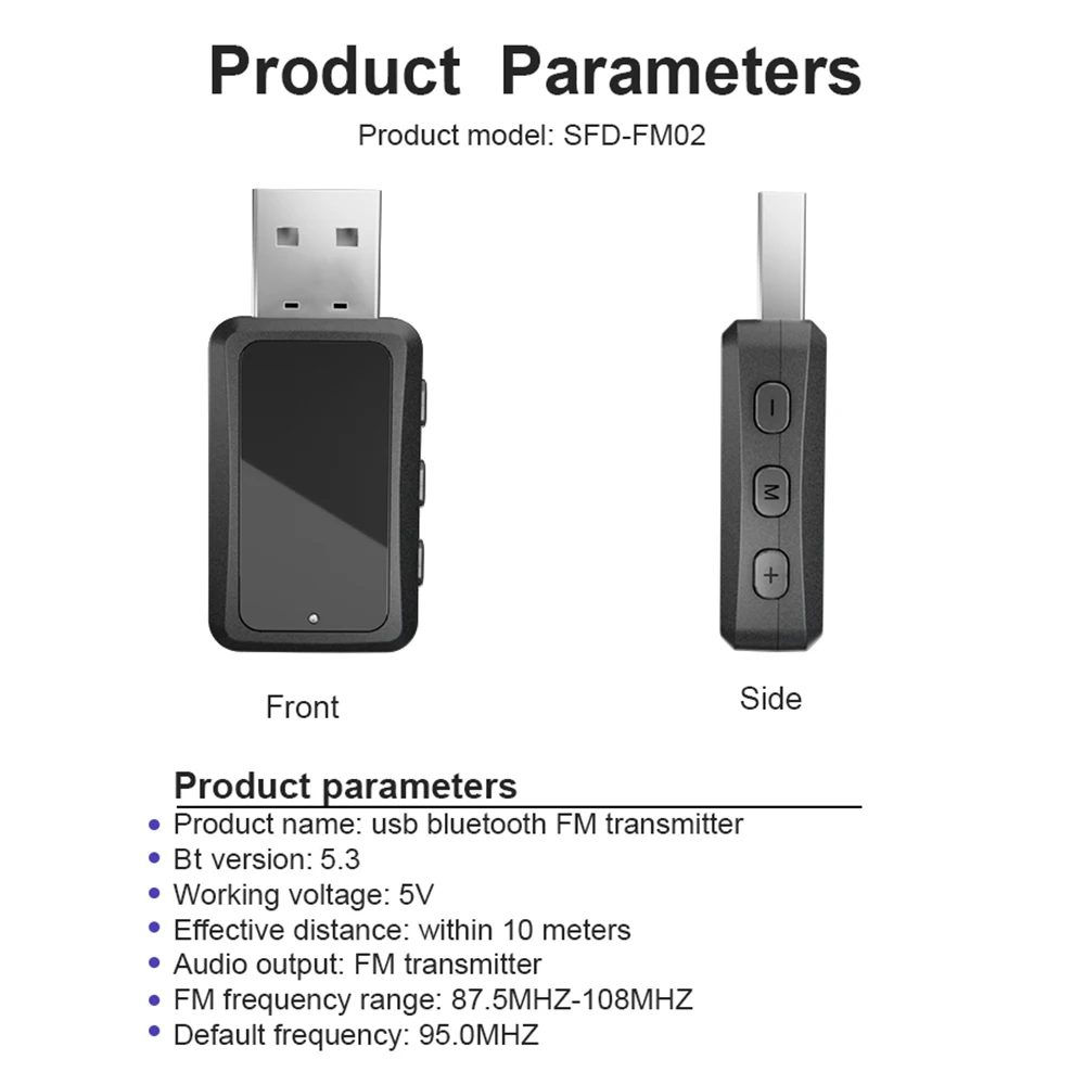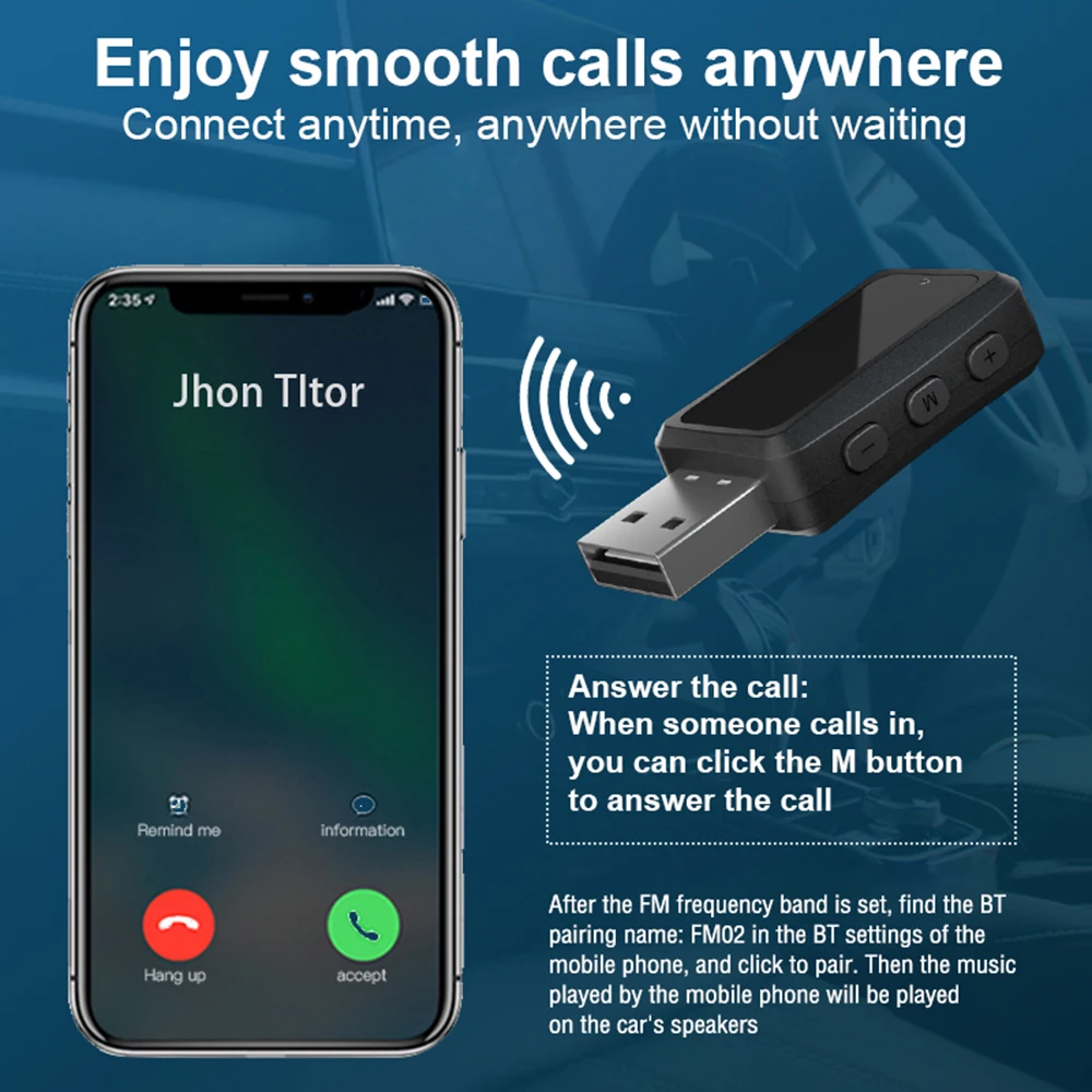 2. Utilizado principalmente en escenas de automóviles, adopta la última tecnología Bluetooth 5,3 y tecnología FM madura, lo que facilita el disfrute de la música inalámbrica del automóvil.