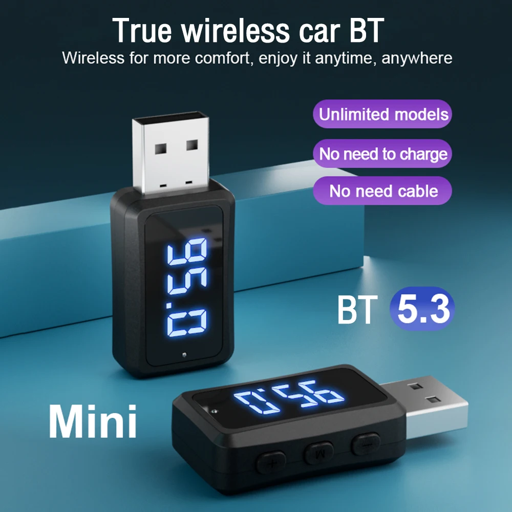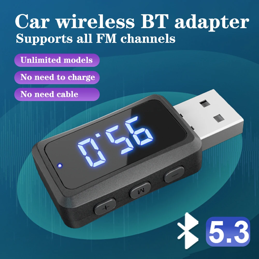 USB Car Bluetooth 5,3 Transmisor FM inalámbrico Receptor de audio Llamada manos libres Kit de coche Auto Audio inalámbrico Adaptador de coche Accesorios